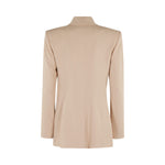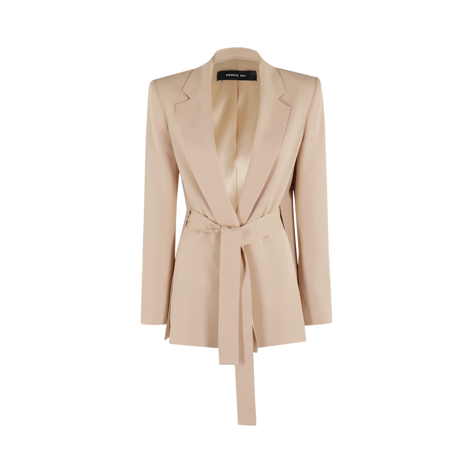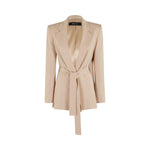 Blazer con spacchi laterali, scollo profondo con revers, manica lunga con spallina imbottita, doppio spacco laterale, chiusura in vita con fusciacca,vestibilità regolare.