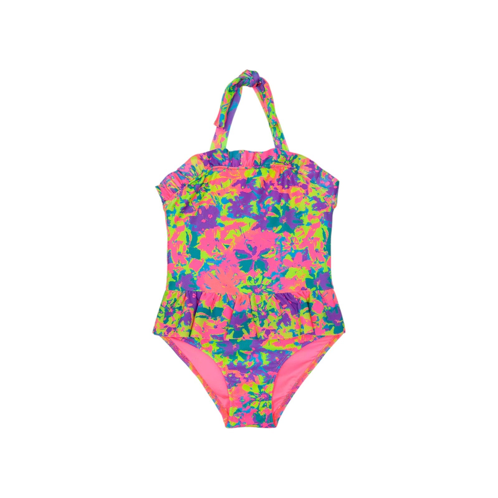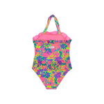 Monokini con volant, in tessuto lycra fantasia .