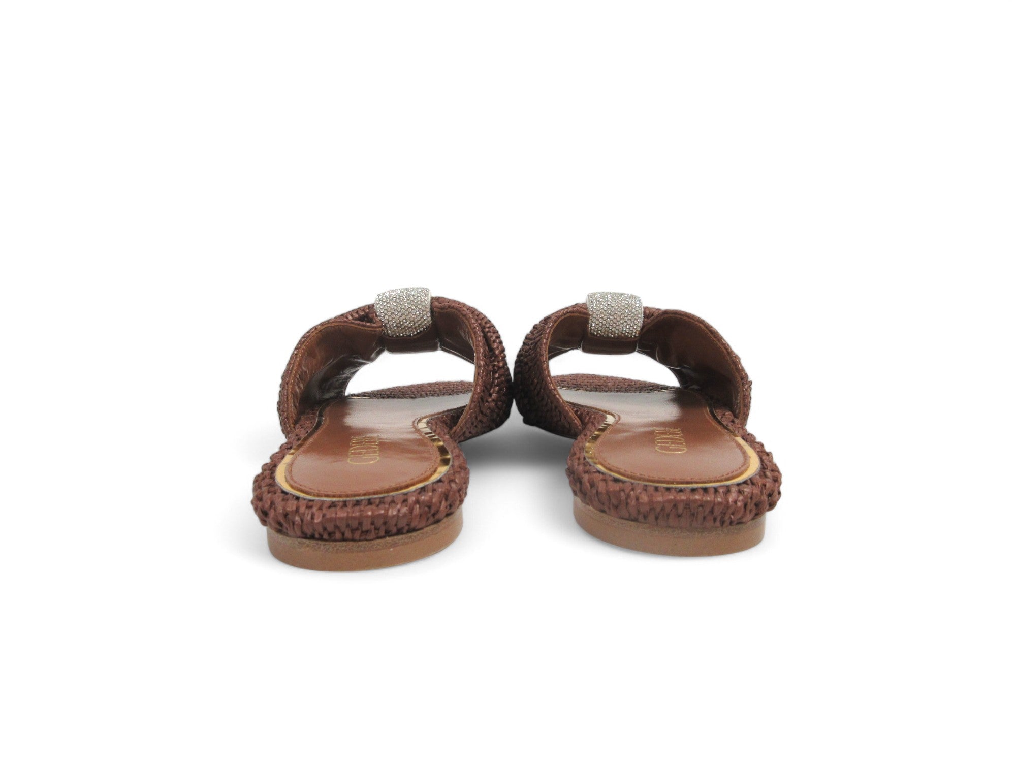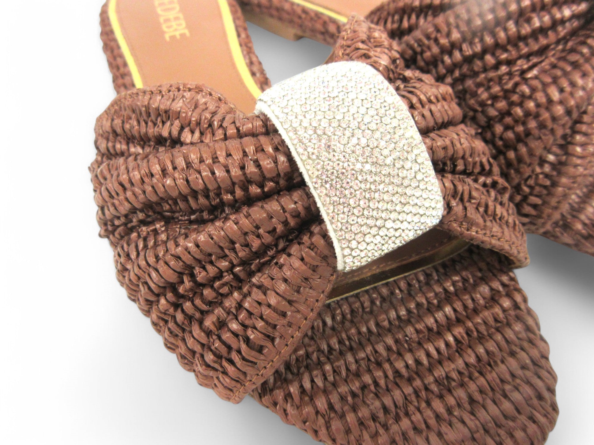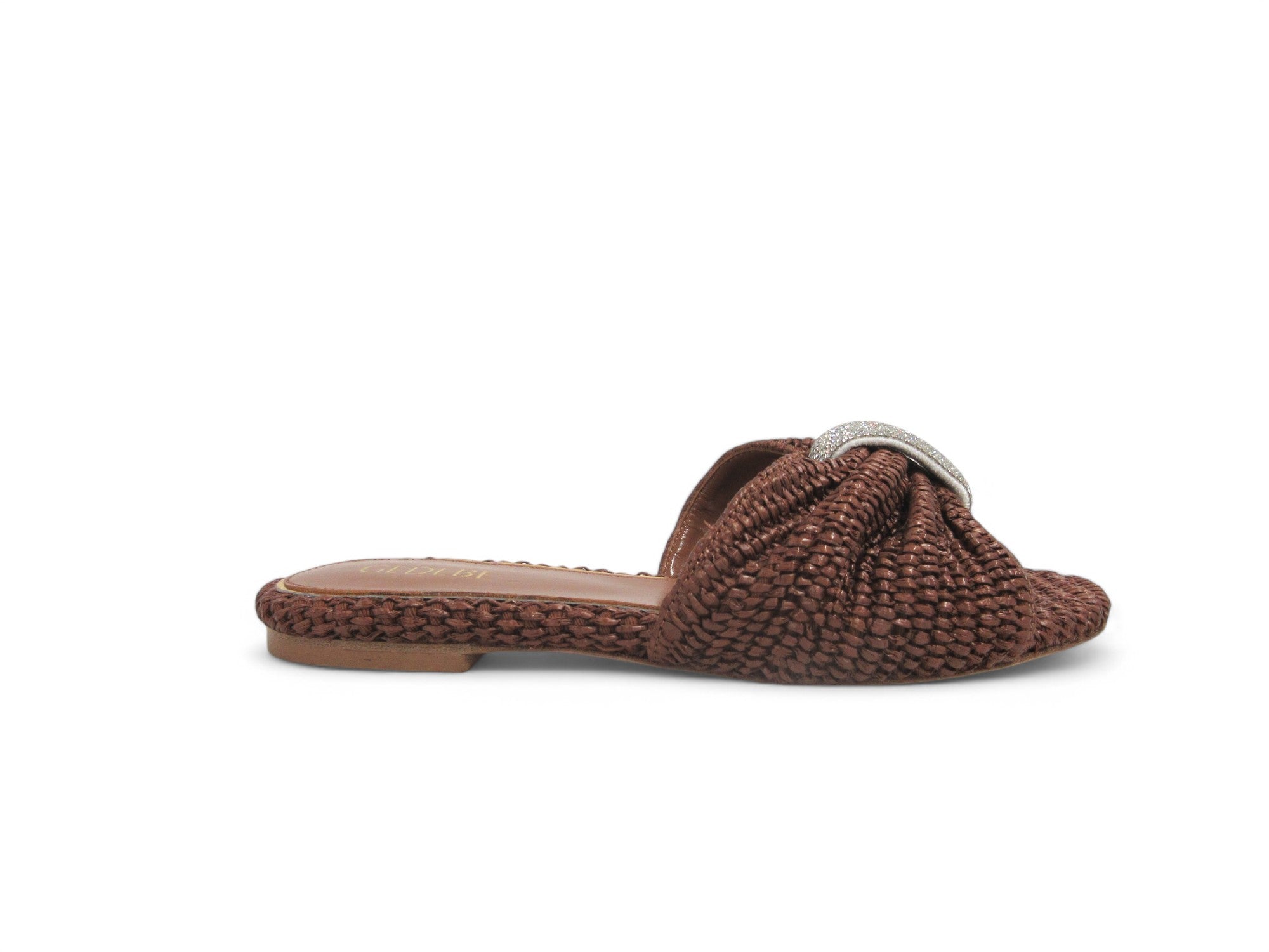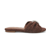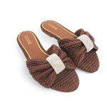Ciabatte donna in rafia intrecciata, gioiello applicato.
