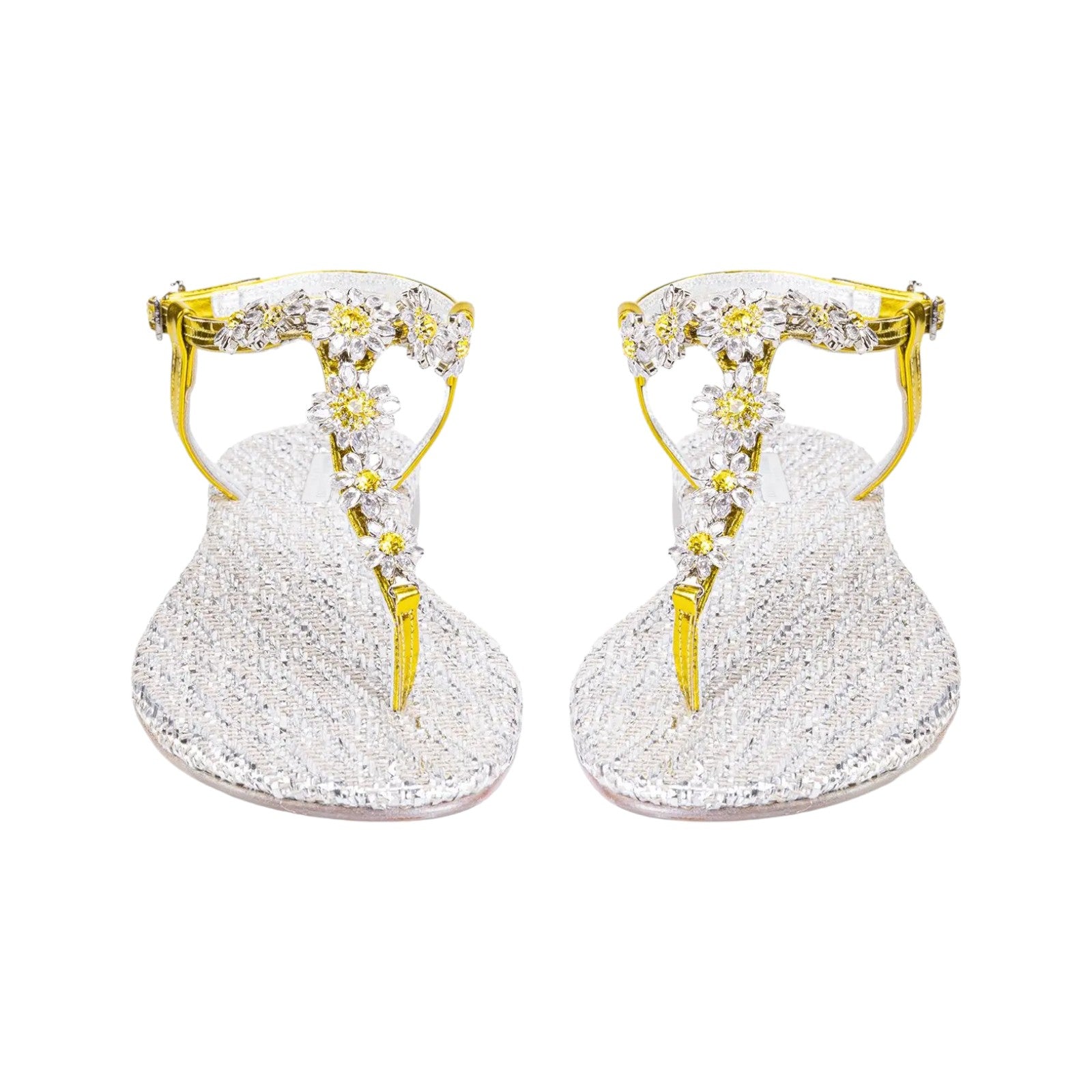 Sandali infradito spina di pesce rafia tahuata e nappa specchio lemon. Sottopiede rivestito su suola con tacco 10. Pietre margherita giallo e ctystal.