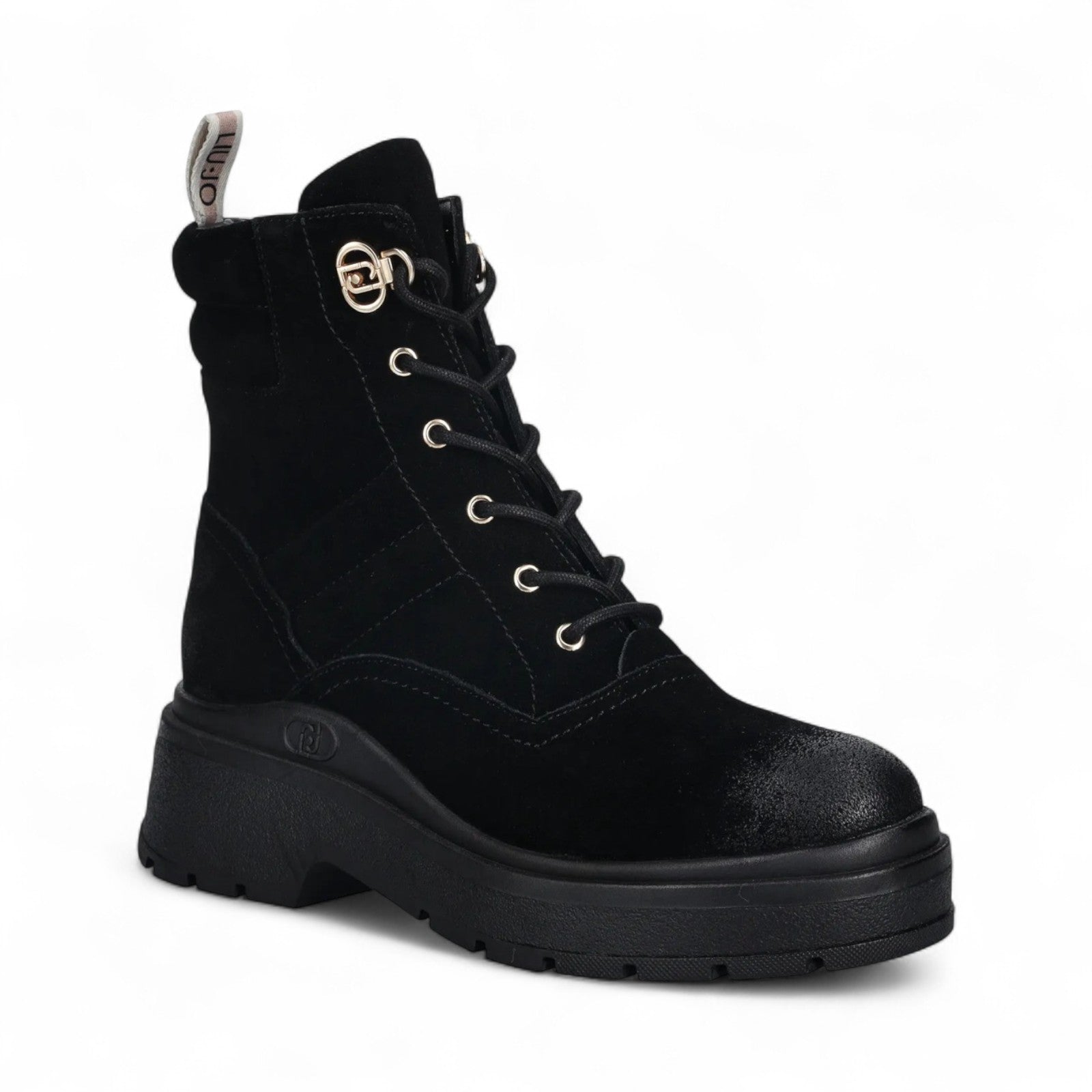 Anfibi con tomaia in suede. Dettagli bold. Lacci tondi con passalaccio logato. Chiusura con zip interna. Suola dentellata. Logo lettering in rilievo sul tallone. Loop con logo stampato.