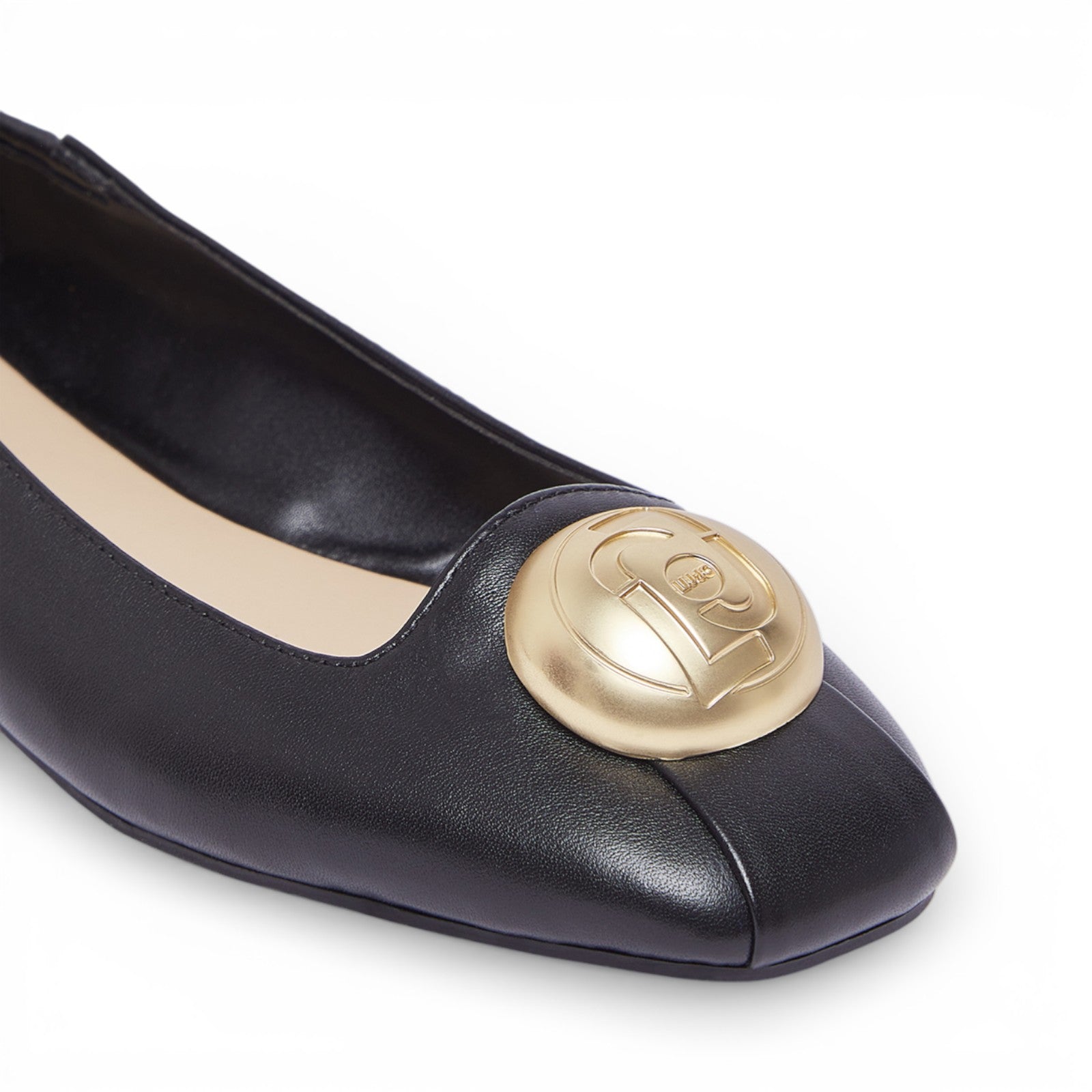 Ballerine in morbida nappa. Inserto elastico sul tallone. Accessorio bold logato. Suola flat.