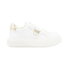 Sneakers con decorazione di Pinko colore bianco tomaia in pelle, decorazione color oro, suola a fantasia, chiusura con lacci, dettaglio con tacco metallizzato.