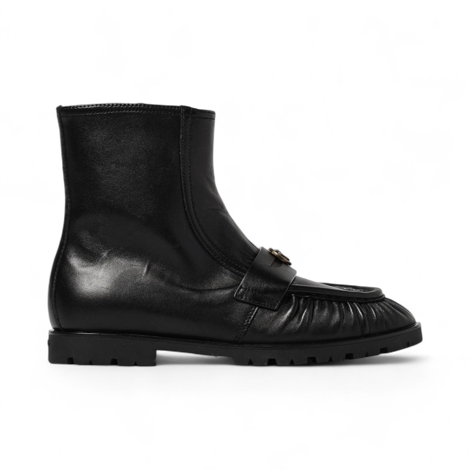 Anfibi donna in pelle con cinturino logato davanti