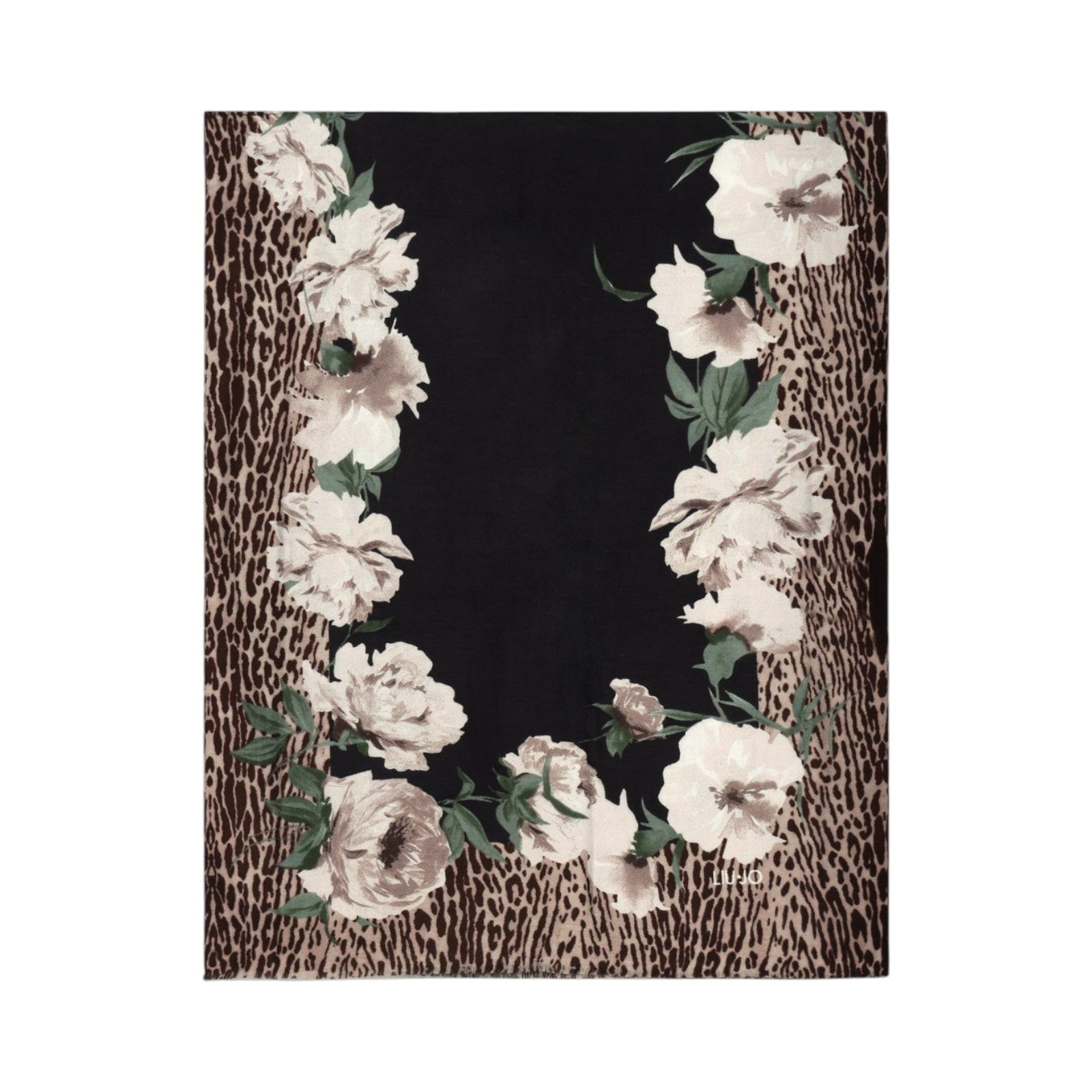 Stola. Realizzata in viscosa garzata. Stampa animalier floreale. Bordi sfrangiati. Presenta pochette logata. Misure: 70 x 180 cm.