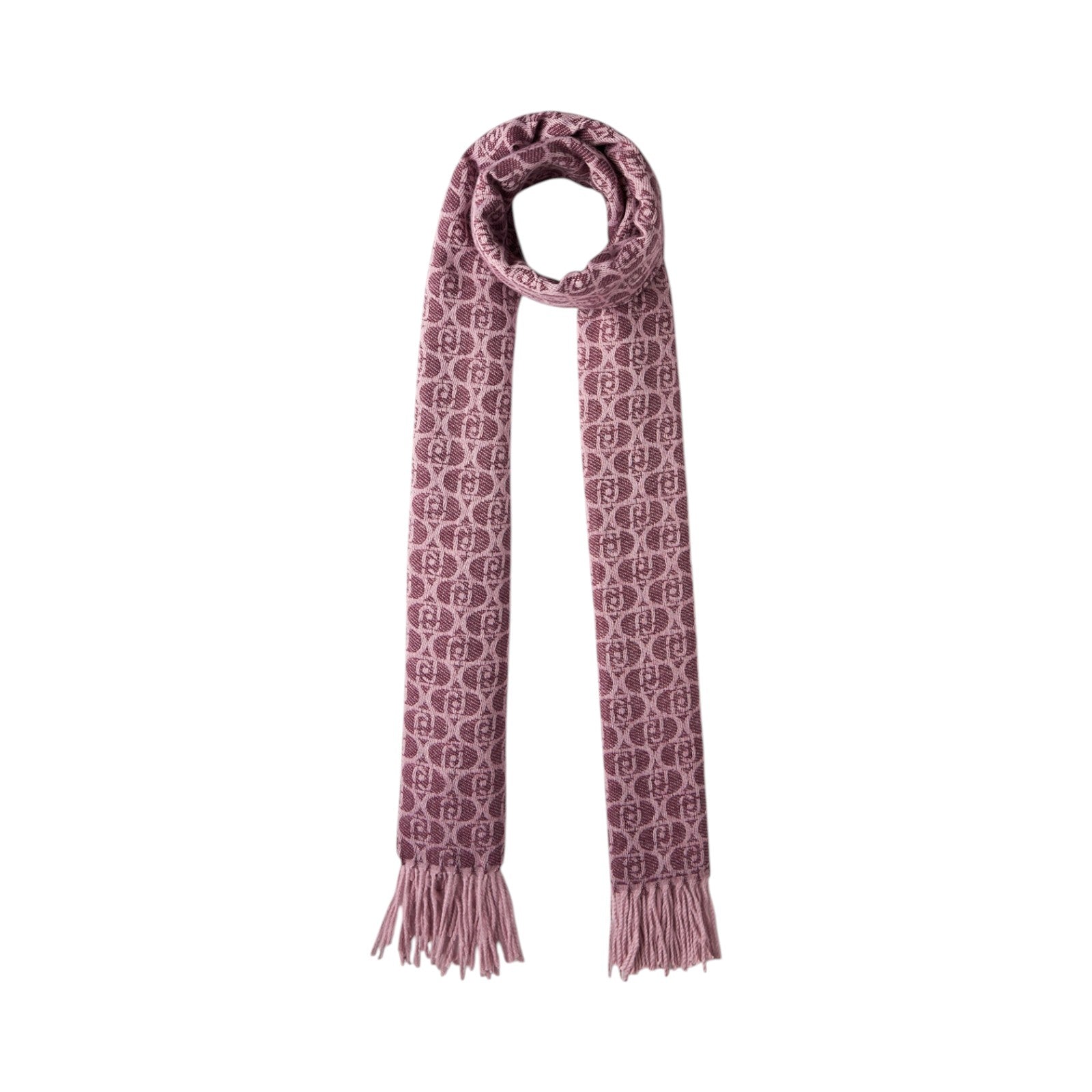 Stola rossa. Realizzata in tessuto jacquard. Logo monogram all over. Bordi con frange. 65 x 180 cm.