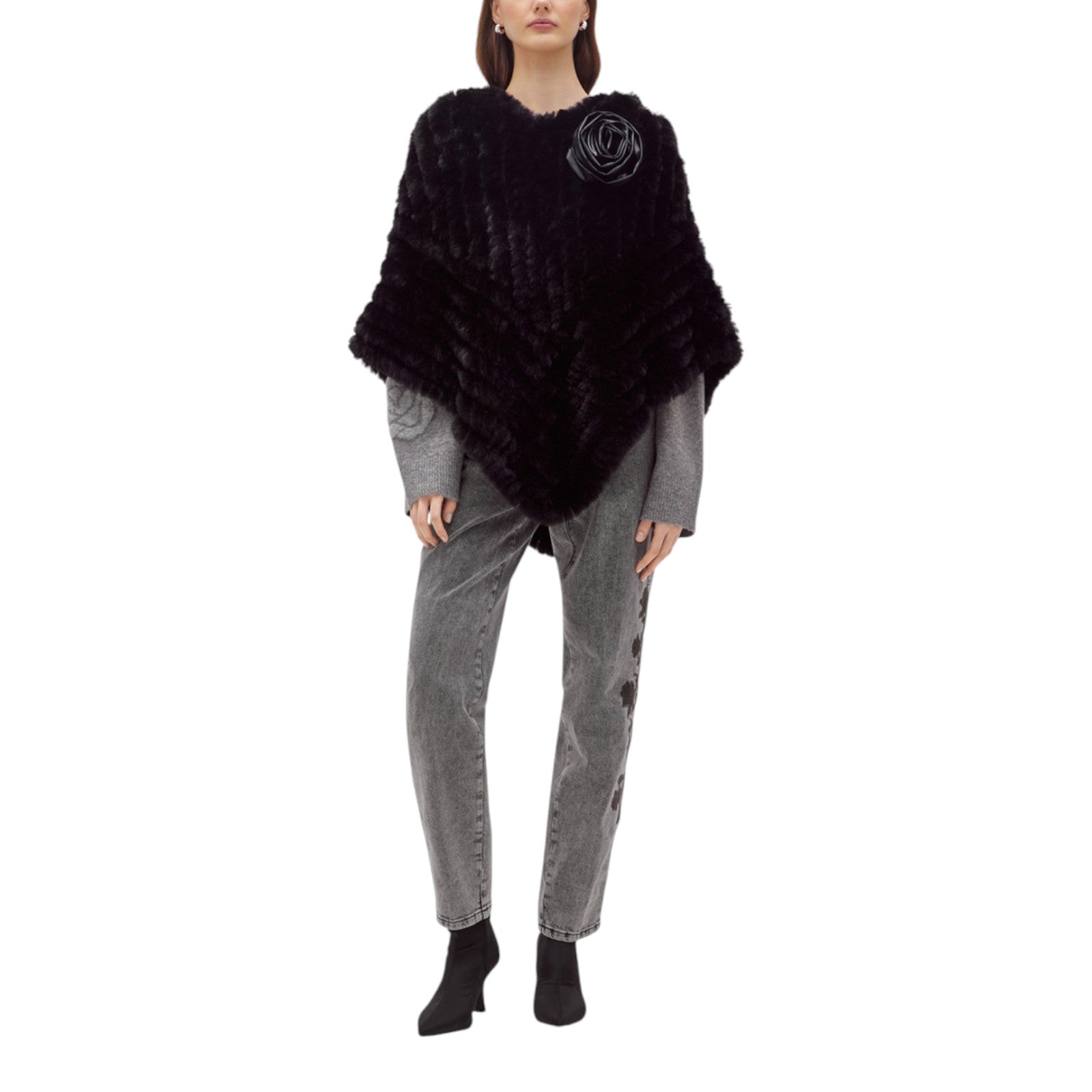 Poncho donna in faux fur con spilla