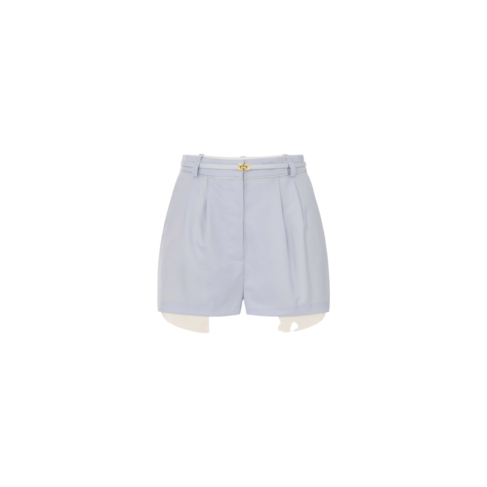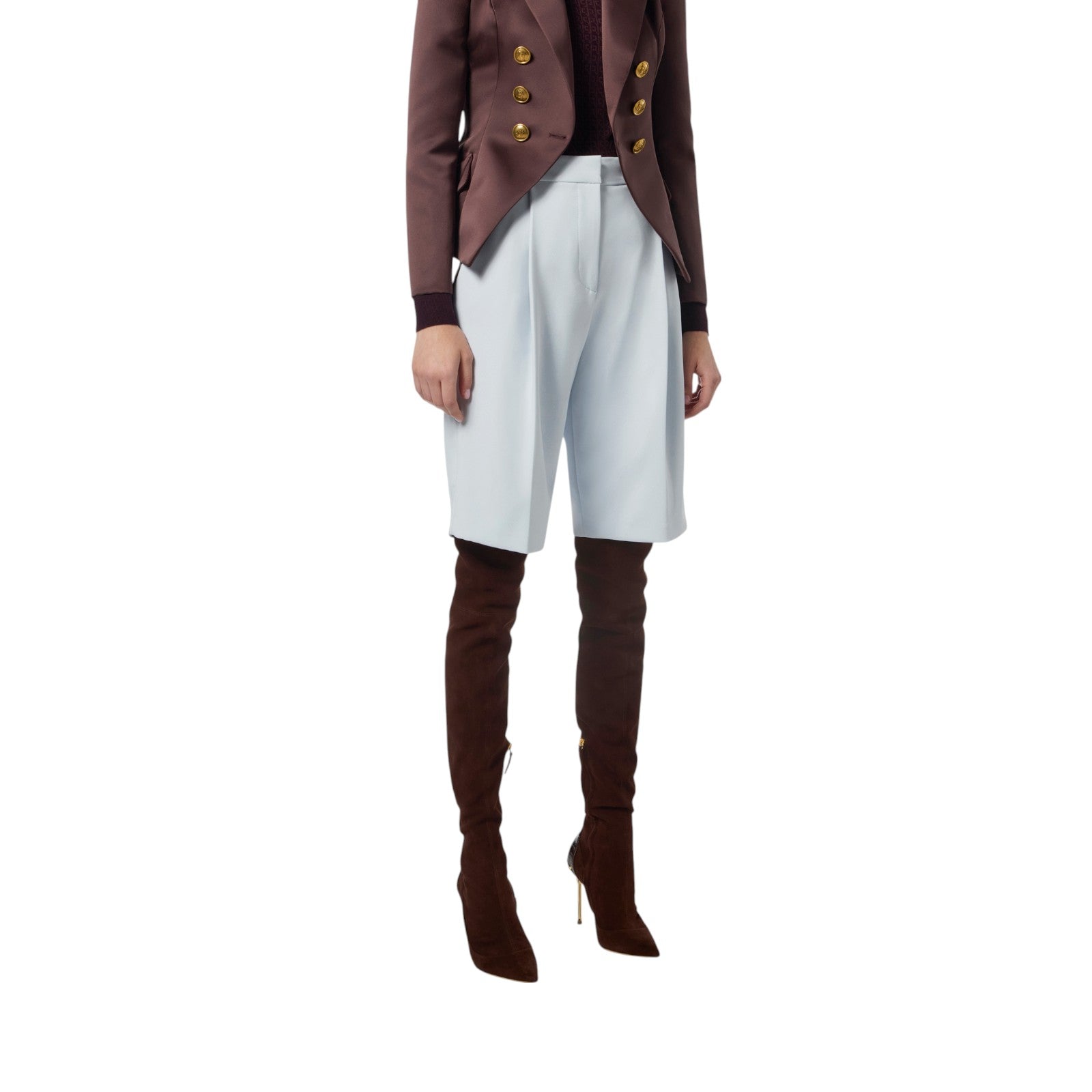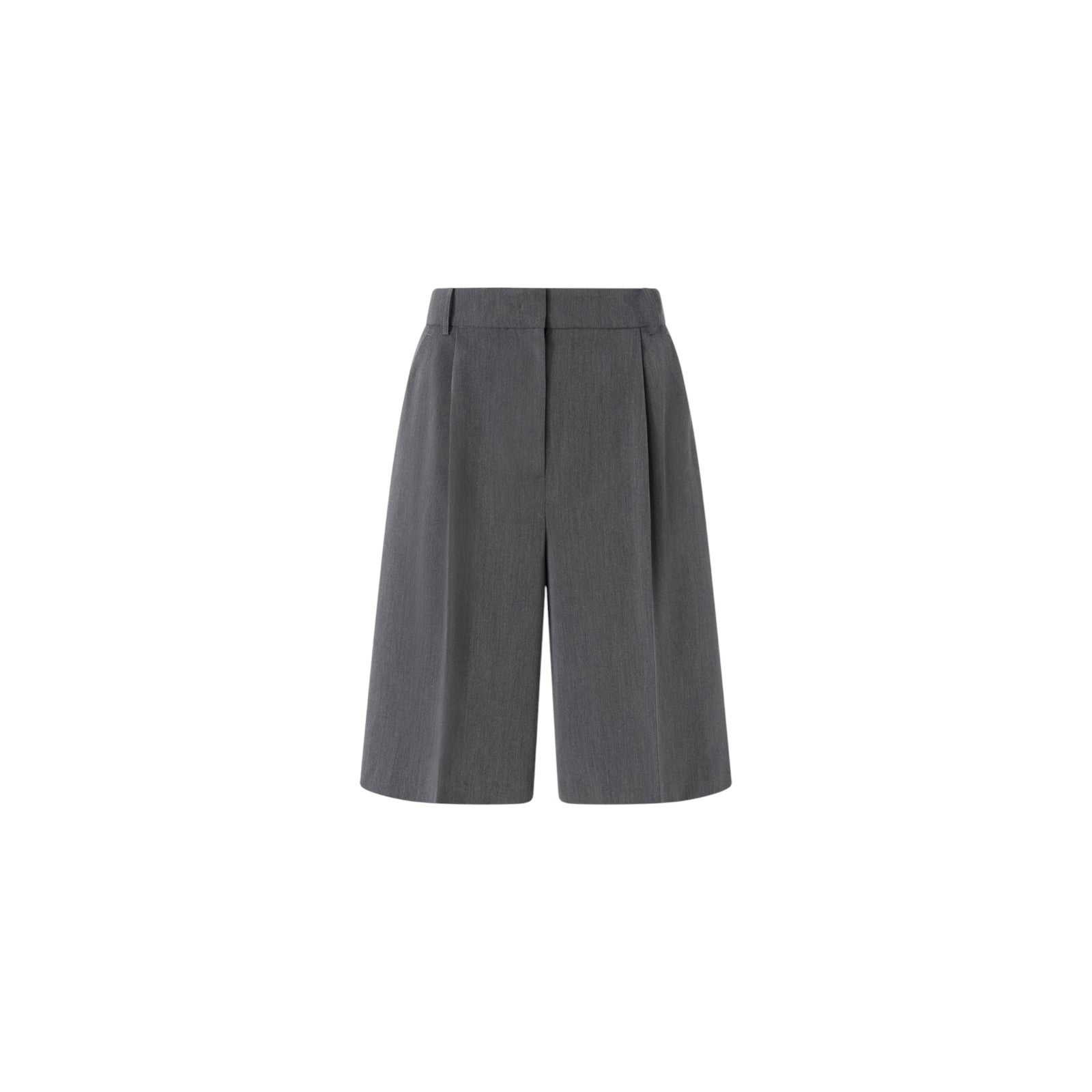 Bermuda donna grigio in fresco di lana con pieghe sartoriali