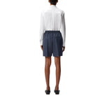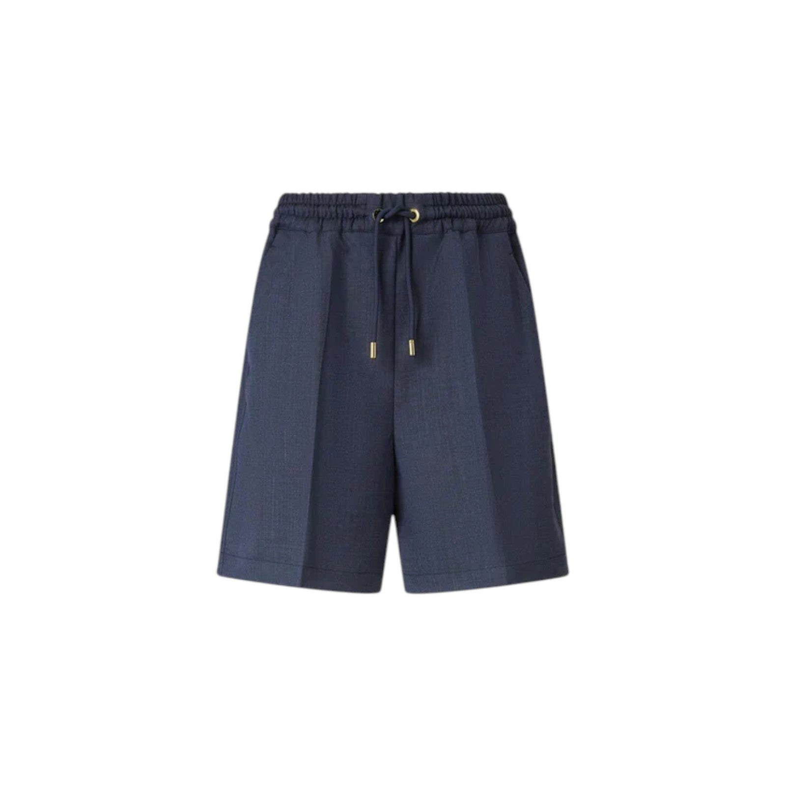 Pantaloncini shorts dal taglio sartoriale con tasche sui fianchi, taschino a filetto sul retro e vita elasticizzata regolabile tramite coulisse. Il capo è realizzato in lana armaturata, particolarmente strutturata e resistente anche per la stagione fredda.