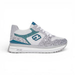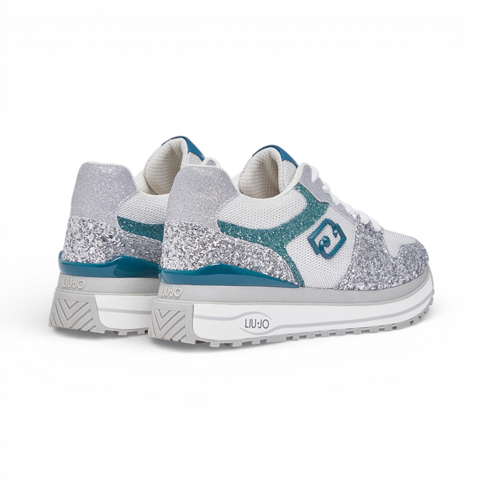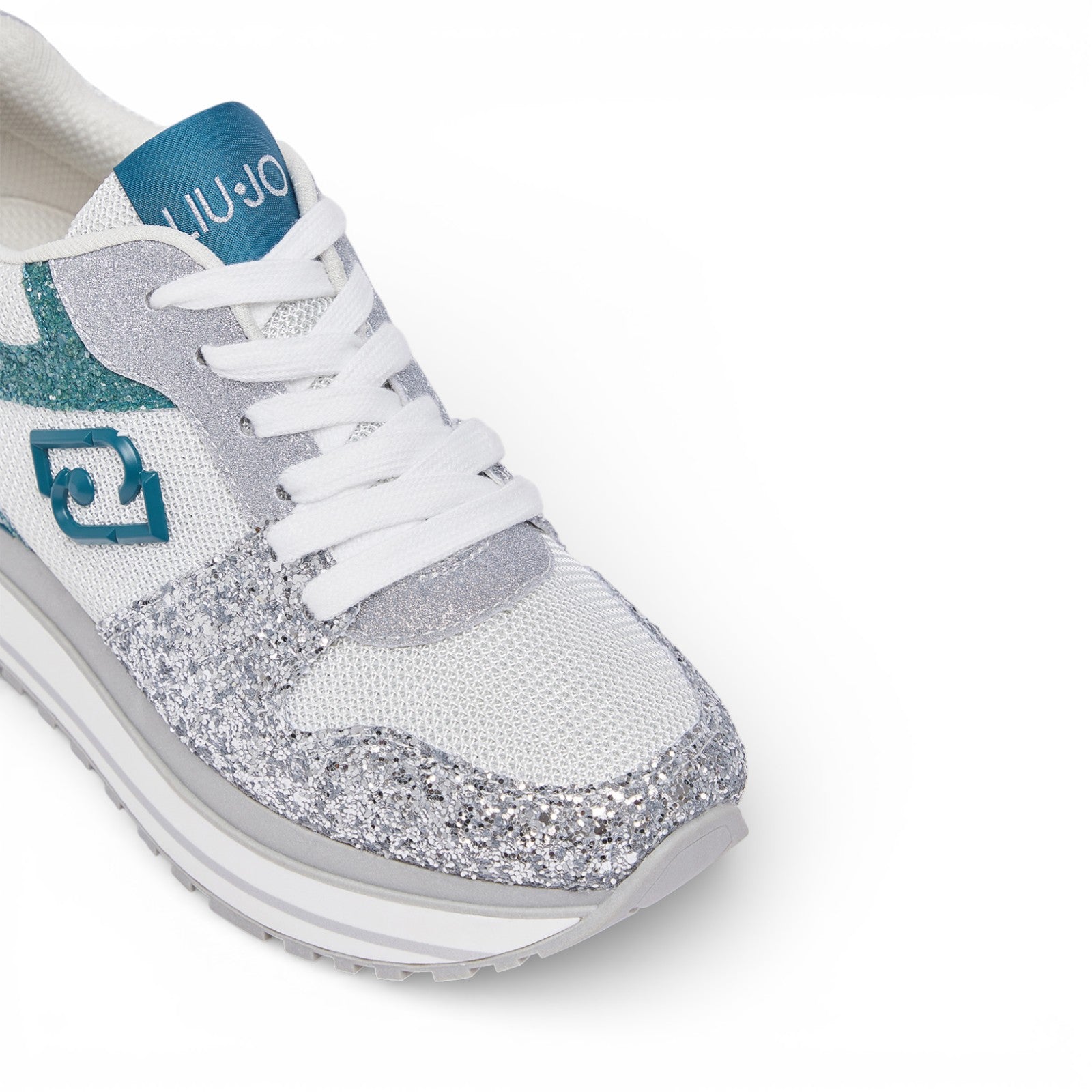 Sneakers con tomaia full glitter. Inserti in brighty mesh. Logo LJ metallico smaltato. Etichetta jacquard sulla linguetta. Spoiler smaltato. Suola platform. Lacci piatti. Battistrada dentellato.