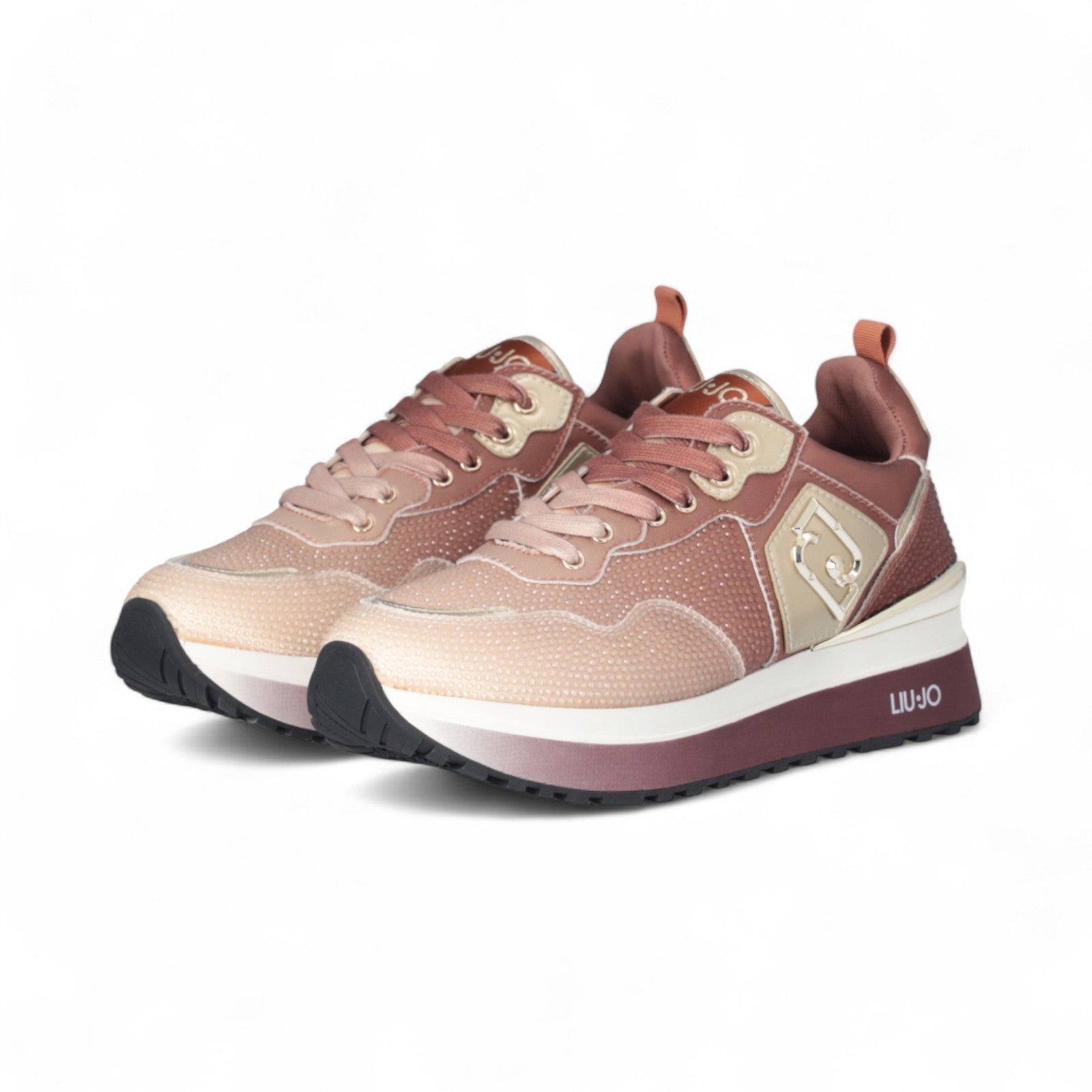 Sneakers con tomaia in raso dégradé. Strass all-over. Inserti effetto laminato. Lacci piatti dégradé. Logo LJ metallico applicato sul lato. Etichetta jacquard sulla linguetta. Spoiler effetto metallico. Suola platform con design multistrato. Battistrada dentellato. Altezza suola: 4,5 cm.