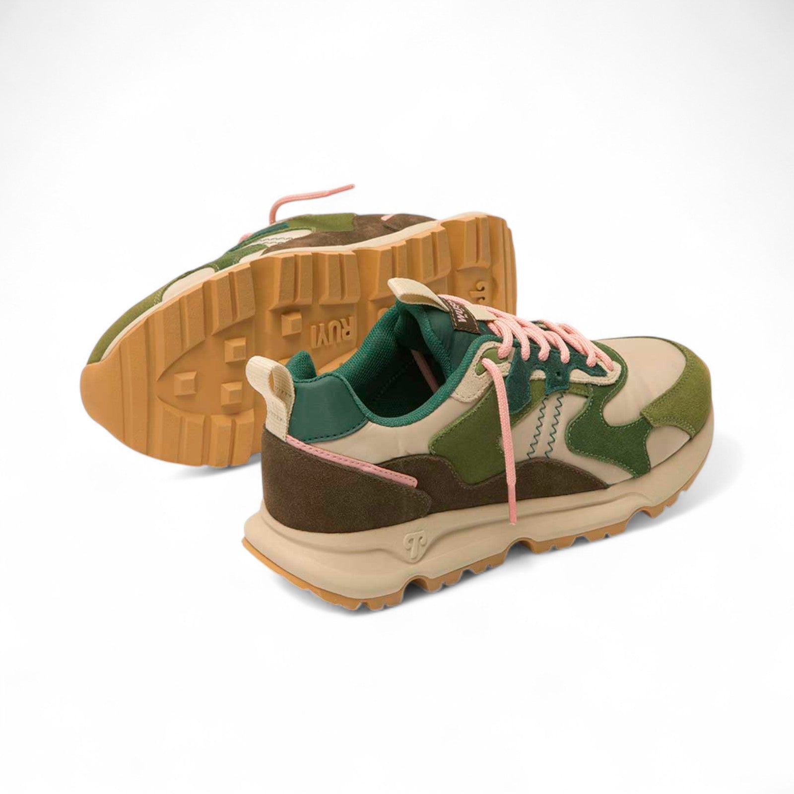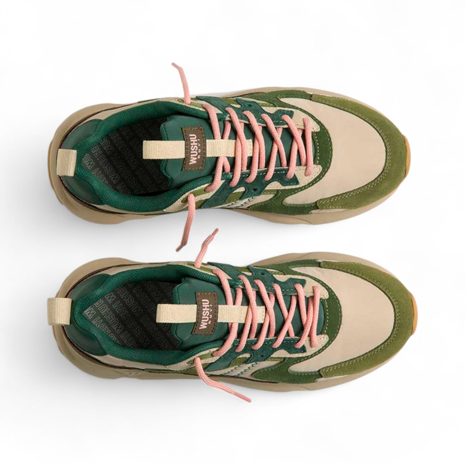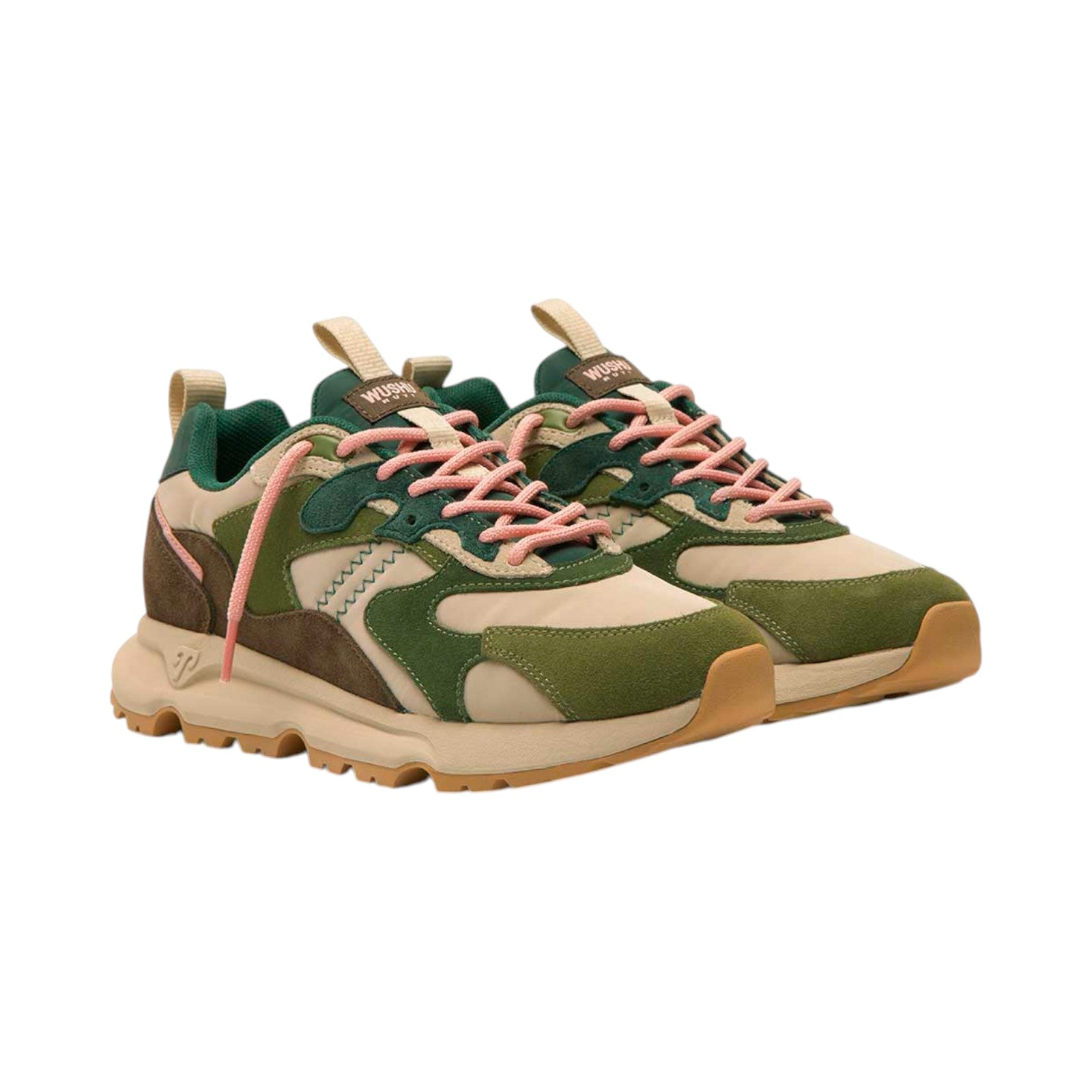 Sneakers Wushu multicolor in pelle e tessuto da donna Punta tonda. Tab logata sulla linguetta. Chiusura con lacci. Inserti in pelle scamosciata.