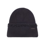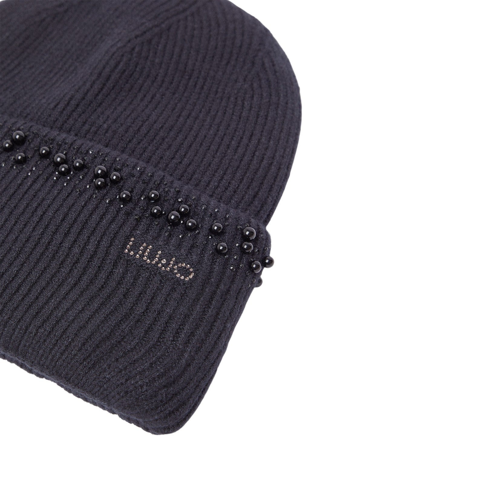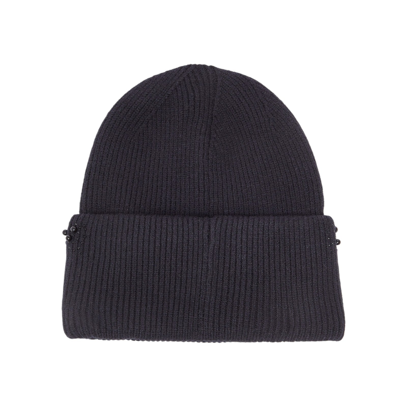 Berretto in maglia. Filati in misto viscosa. Risvolto con perline ricamate.