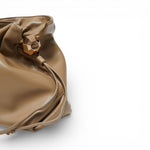 Borsa a spalla media. Logo lettering. Fodera interna logata. Scomparto centrale. Chiusura con bottone magnetico e coulisse.