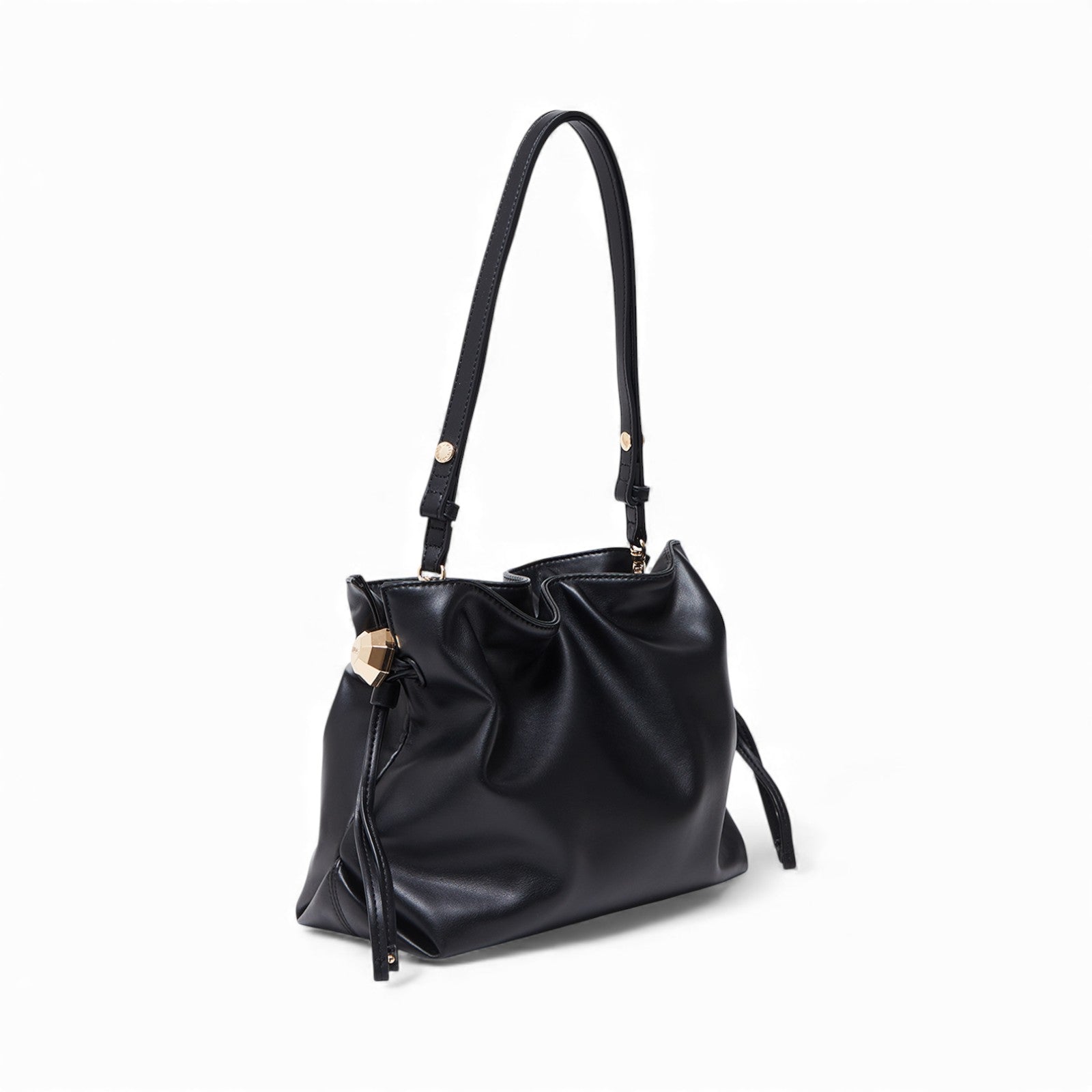 Borsa a spalla media. Logo lettering. Fodera interna logata. Scomparto centrale. Chiusura con bottone magnetico e coulisse.