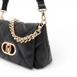 Borsa a tracolla media. Matelassé. Manici intercambiabili. Logo in metallo. Tasca di servizio. Chiusura con bottone magnetico.