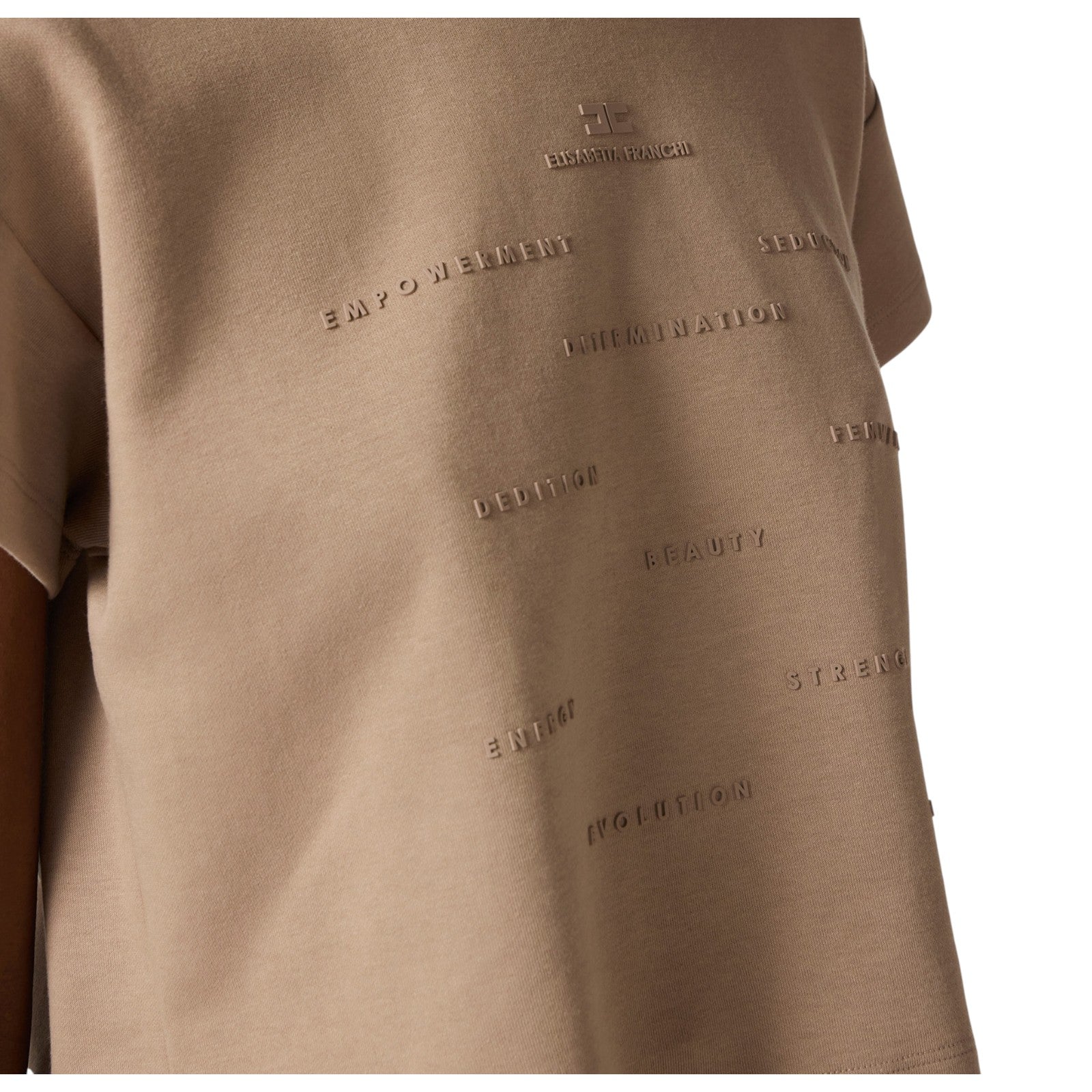 Maglietta a maniche corte ad aletta in jersey e con girocollo. È personalizzata sul davanti con logo e lettering stampati in gomma a rilievo, in tono e con effetto 3D per dei dettagli tattili. Vestibilità regular.