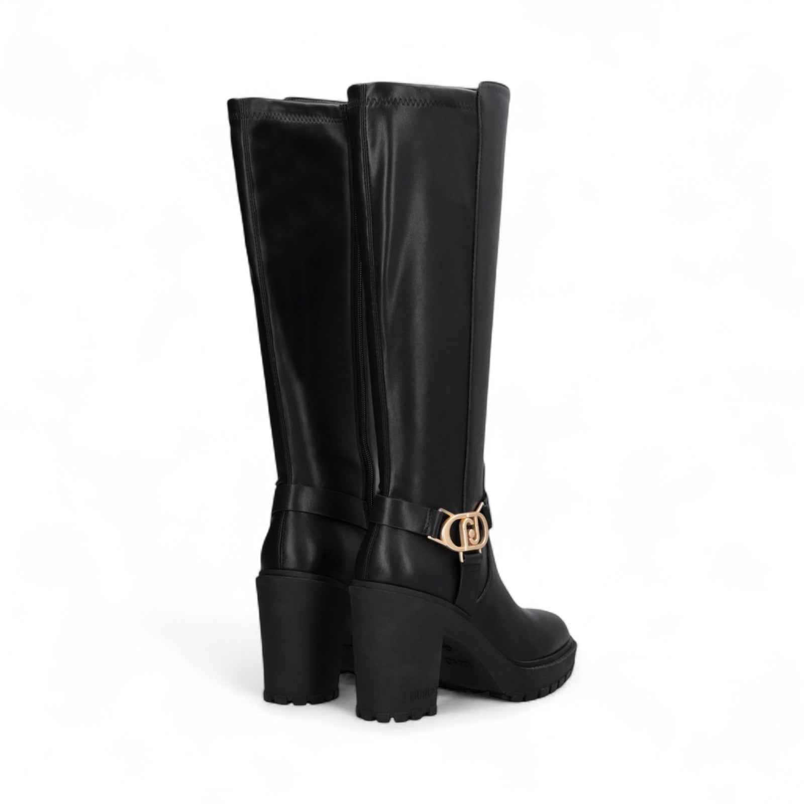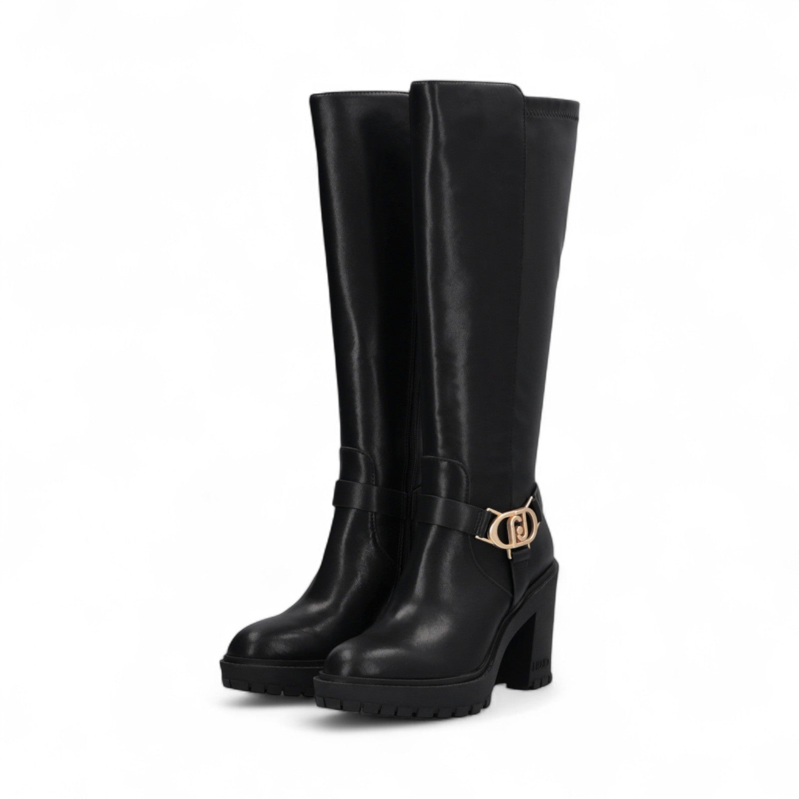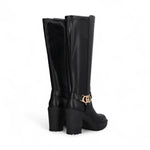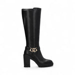 Stivali alti. in pelle. Gambale con inserto stretch. Chiusura con zip interna. Logo monogram. Suola con comodo plateau. Tacco largo. con logo in rilievo. Altezza tacco: 10 cm. Altezza plateau: 2,5 cm. Altezza gambale: 37 cm.