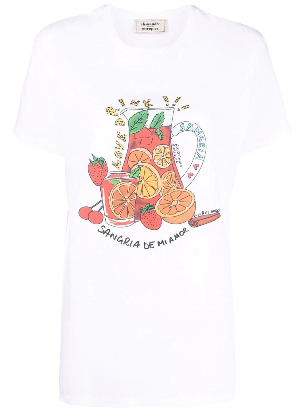 T-shirt con stampa con slogan frontale, scollo rotondo, maniche corte e orlo dritto.