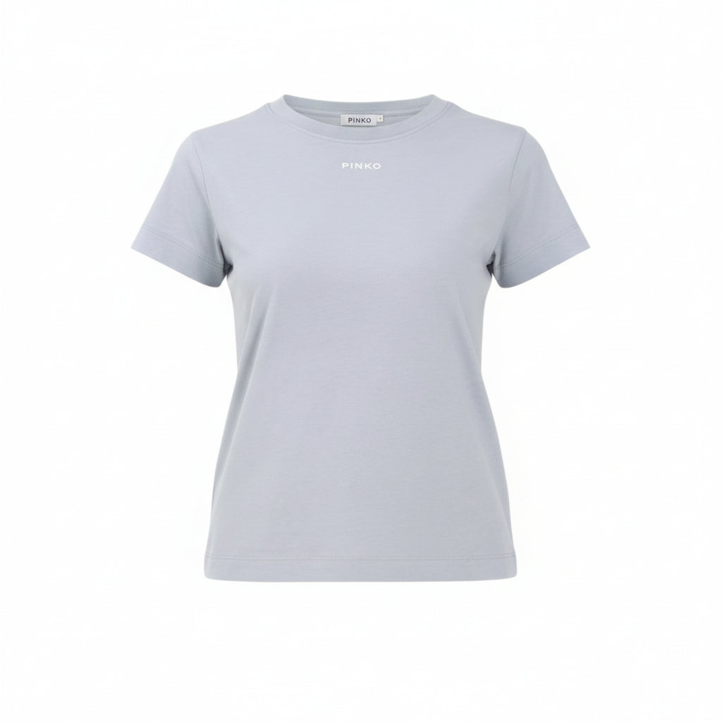 T-shirt girocollo a maniche corte realizzata in jersey di puro cotone. Il modello è personalizzato dal logo lettering PINKO in rilievo dall'effetto verniciato a contrasto sul petto.