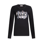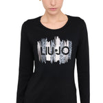 T-shirt con filati 100% cotone. Maniche lunghe. Girocollo. Stampa sul davanti. Strass applicati. Prodotto "Liu Jo Better".