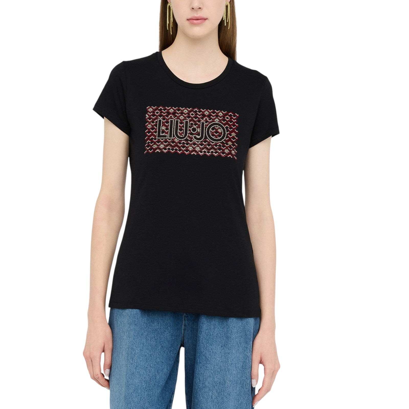 T-shirt con filati 100% cotone. Maniche corte. Girocollo. Stampa sul davanti. Strass applicati. Prodotto "Liu Jo Better".