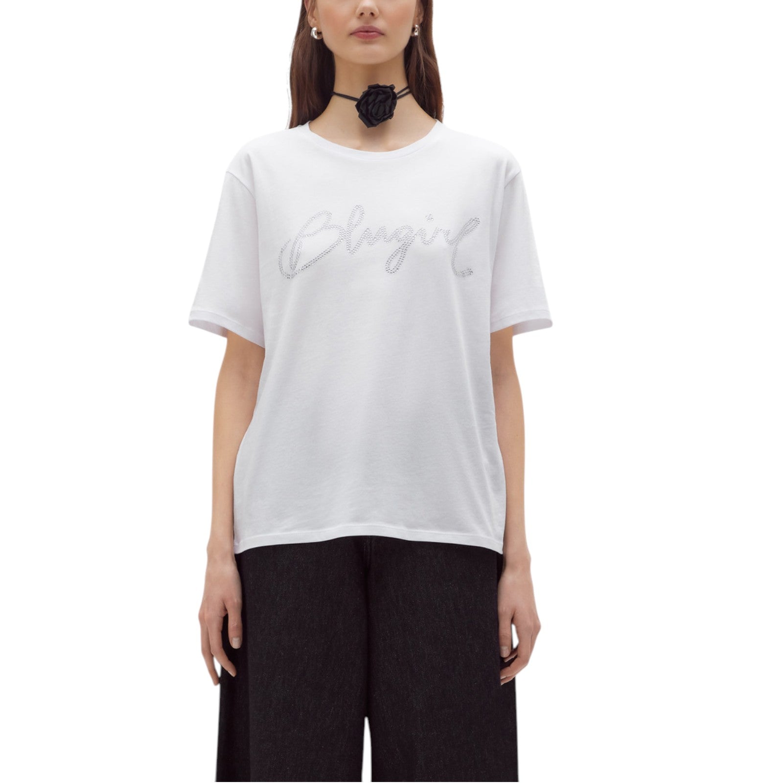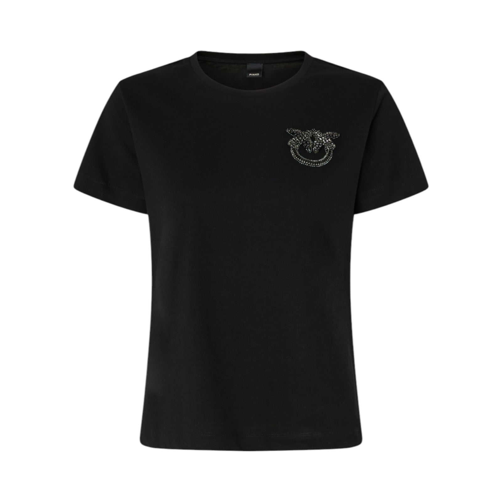 T-shirt donna con ricamo logo Love Birds in cristalli