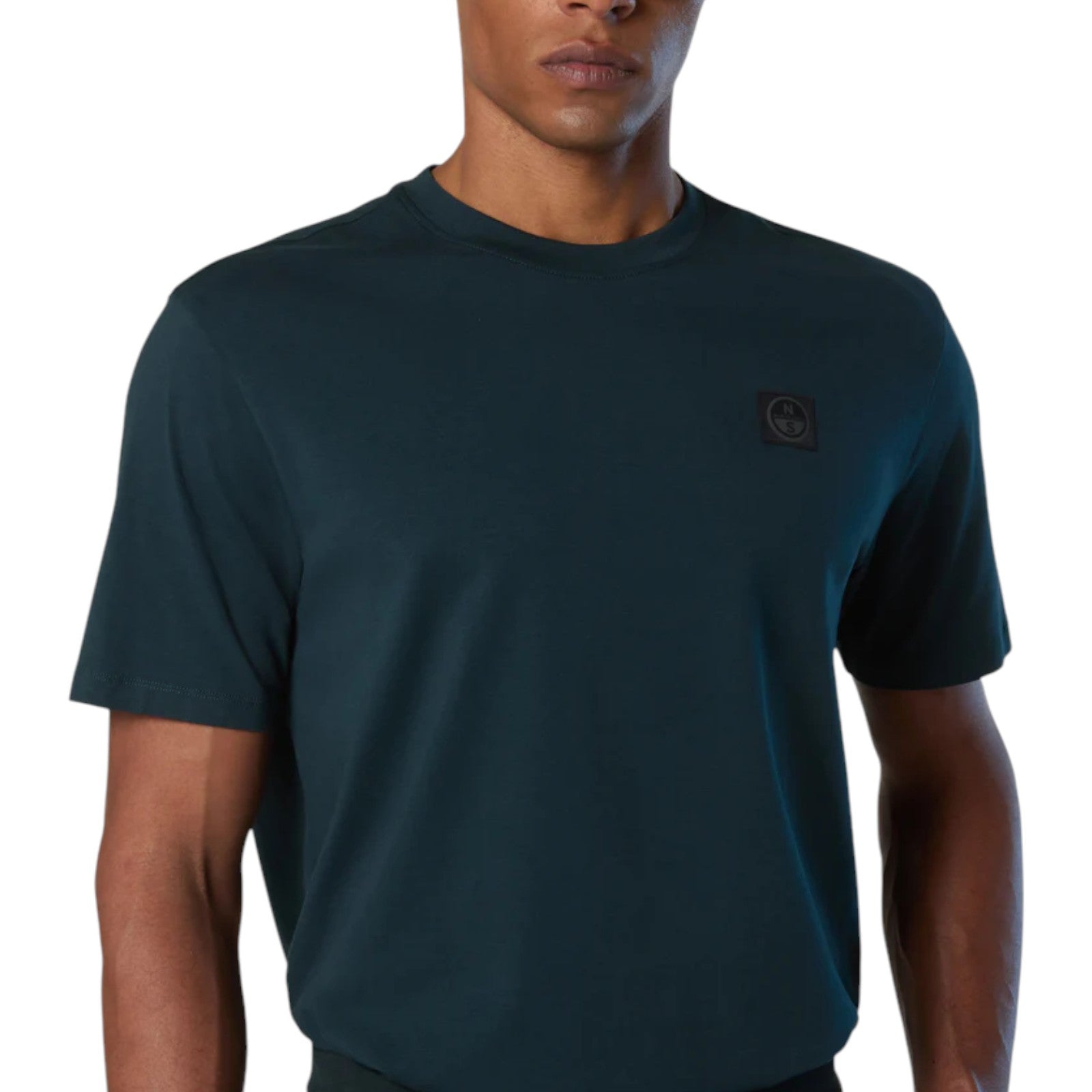 Realizzato in jersey di cotone organico stretch. Vestibilità regolare. Collo a giro e maniche corte. Patch North Tech sul petto.
