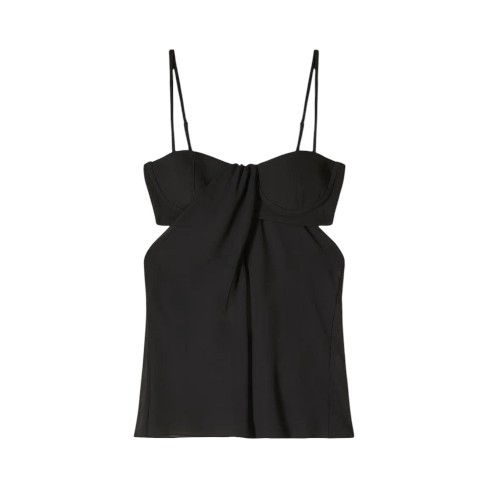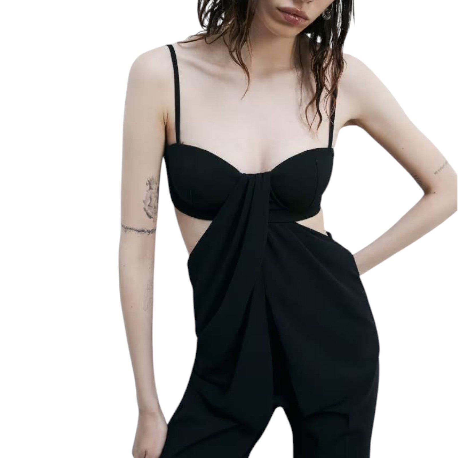 Tessuto in poliestere fluido stretch. Vestibilità ridotta per il corsetto e morbida lungo il busto. Scollo a reggiseno sul davanti e profondo, morbido, sulla schiena. Spalline regolabili. Dettaglio logo Fly in metallo sotto lo scollo dietro la schiena. Chiusura posteriore a reggiseno con gancetti.