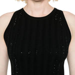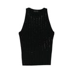 Top in maglia con trama a coste. Scollo all'americana. Decorazione con strass. Senza maniche.