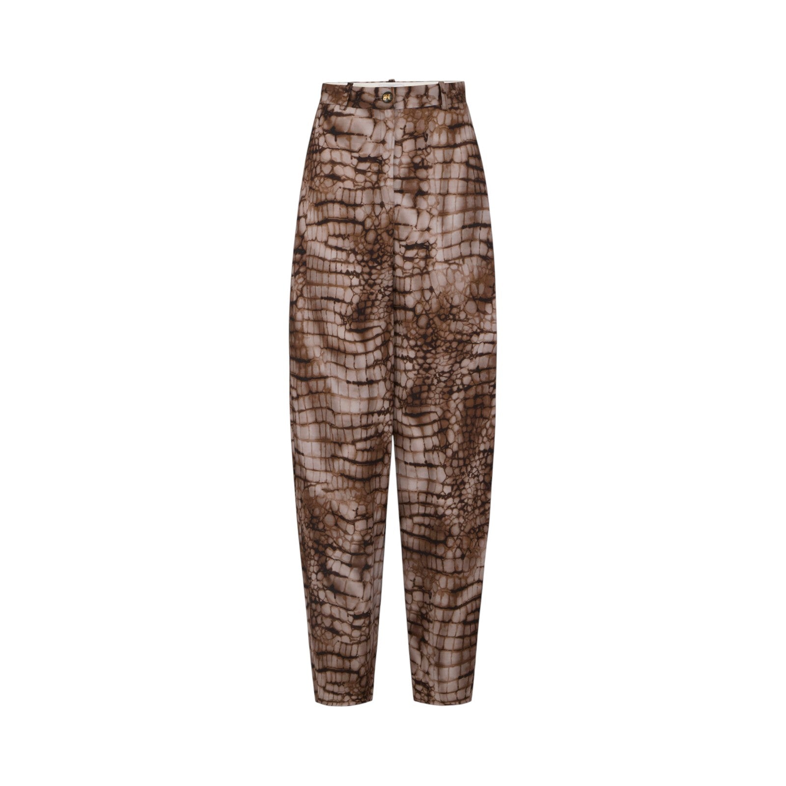 Pantaloni donna in crêpe leggero con motivi a taglio vivo