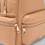 Zaino da donna color cammello. Stampa effetto bottalato. Fodera interna. Tasche frontali e laterali. Chiusura con zip. Spallacci regolabili.