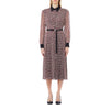 Taglio svasato. Foderato. Scollo a punta con colletto. Polsini con bottone. Chiusura laterale con zip nascosta. Cintura regolabile che modella la figura e accentua ulteriormente il punto vita.