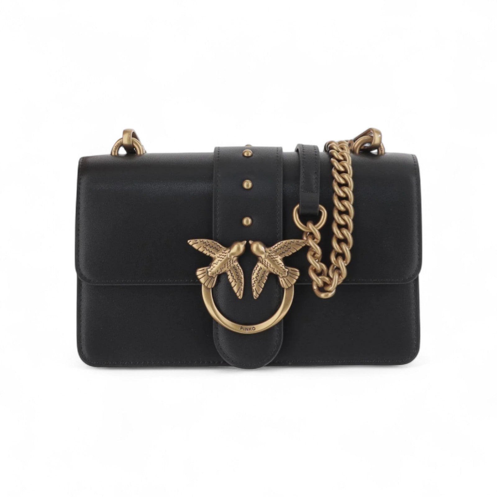Borsa a tracolla piccola Love Bag One realizzata in pelle dalla mano seta. Caratterizzato dalla tracolla regolabile e rimovibile in pelle e catena, il modello risulta estremamente versatile e pratico. La chiusura a baccello con bottone magnetico è completata da fibbia con logo uccellini Love Birds Diamond Cut e piccole borchie in metallo in galvanica antique gold. L'interno è foderato in cotone e presenta una tasca con zip per tenere al sicuro i tuoi essenziali.