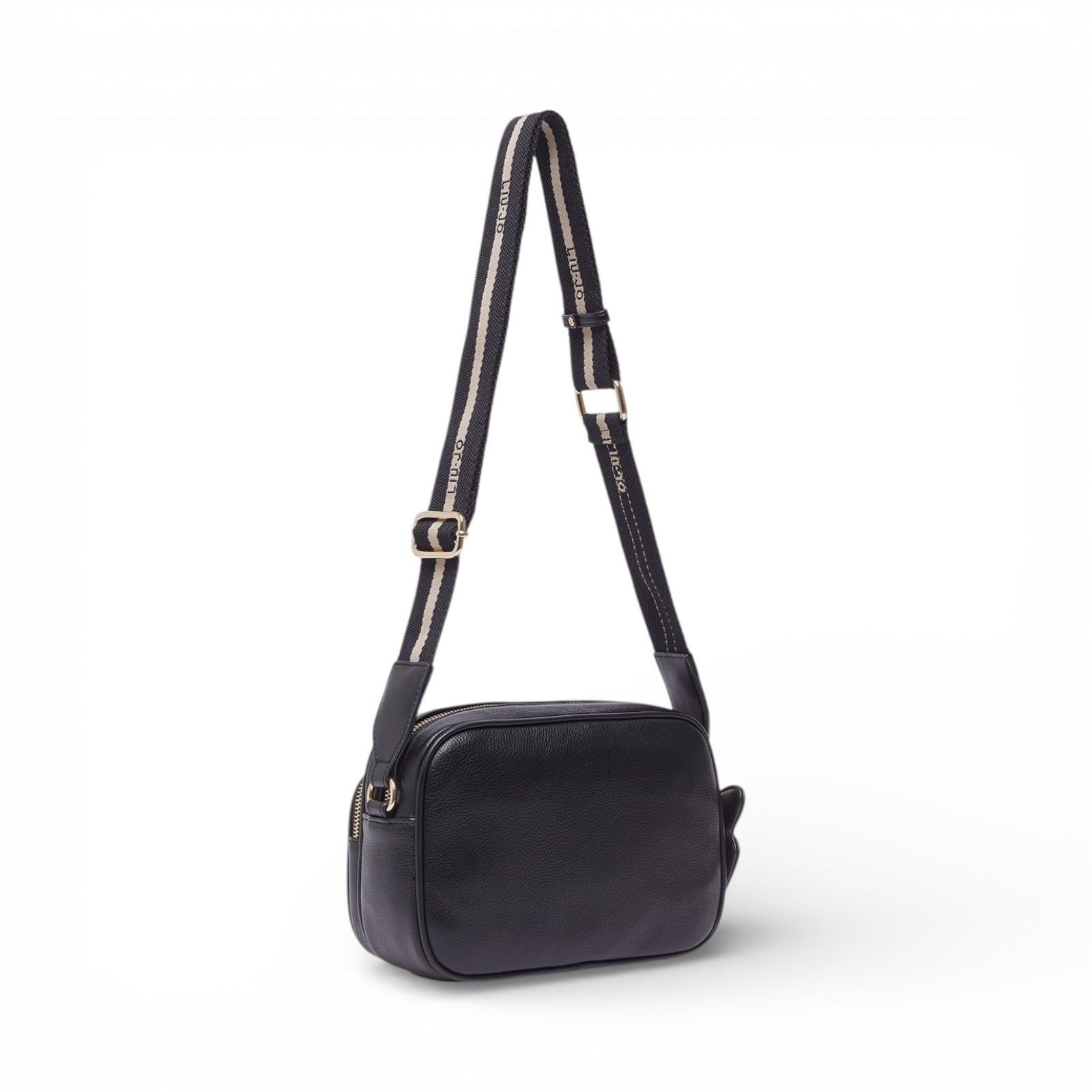 Borsa a tracolla media. Stampa bottalata. Scomparto centrale. Fodera logata. Tasca frontale. Chiusura con zip. Logo lettering. Portamonete logato. Tracolla regolabile.