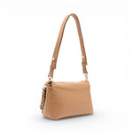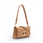 Borsa a tracolla media. Stampa effetto nappa. Manico con catena intrecciata. Tracolla removibile. Logo in metallo. Tasca di servizio chiusa con zip. Chiusura con bottone magnetico. Misure: 26 x 8 x 16 cm.