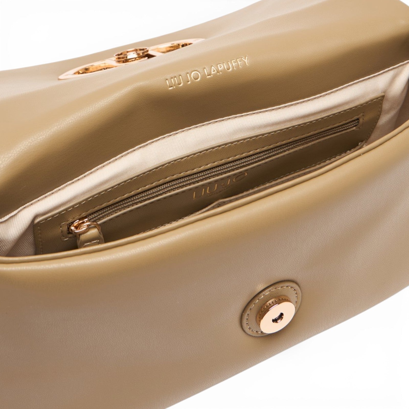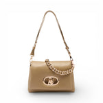 Borsa a tracolla media. Stampa effetto nappa. Manico con catena intrecciata. Tracolla removibile. Logo in metallo. Tasca di servizio chiusa con zip. Chiusura con bottone magnetico.