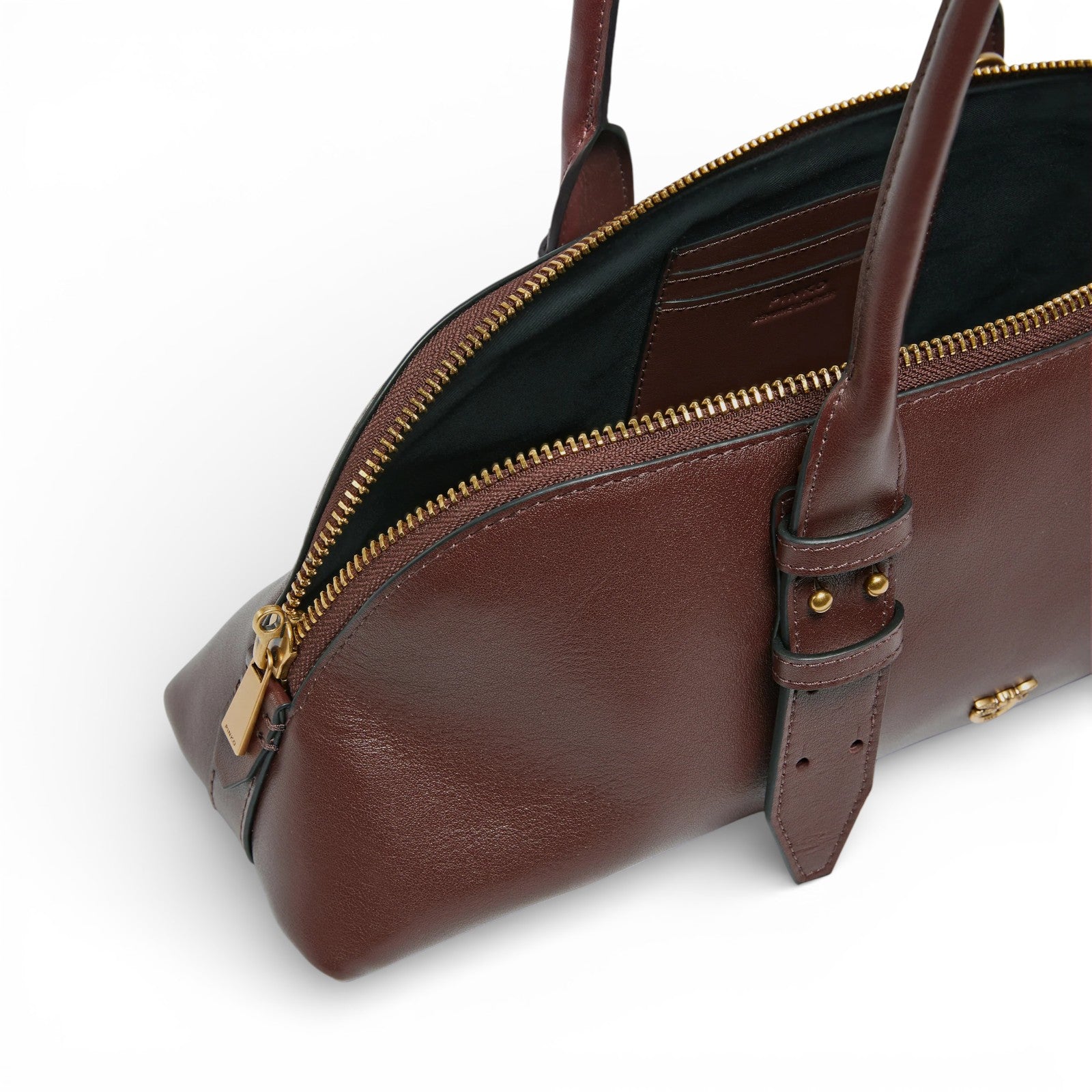 Borsa bowling Escape Bag Horizontal grande realizzata in morbida pelle. Estremamente versatile e raffinata, la borsa è dotata di due lunghi manici superiori e di una tracolla regolabile e rimovibile in pelle che offrono tre diverse opzioni di portabilità: a spalla, crossbody oppure a mano. La chiusura superiore con zip a doppio cursore è personalizzata con un dettaglio inedito: un lucchetto decorato dall'iconico logo Love Birds che può essere aperto e chiuso grazie alla chiave contenuta nel charm in pelle che completa la borsa. L'interno è foderato in tessuto drill di cotone e include una tasca a parete con spazi per carte di credito e documenti.