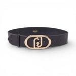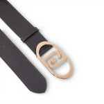 Cintura nera in vera pelle. Fibbia regolabile. Logo monogram ovale.