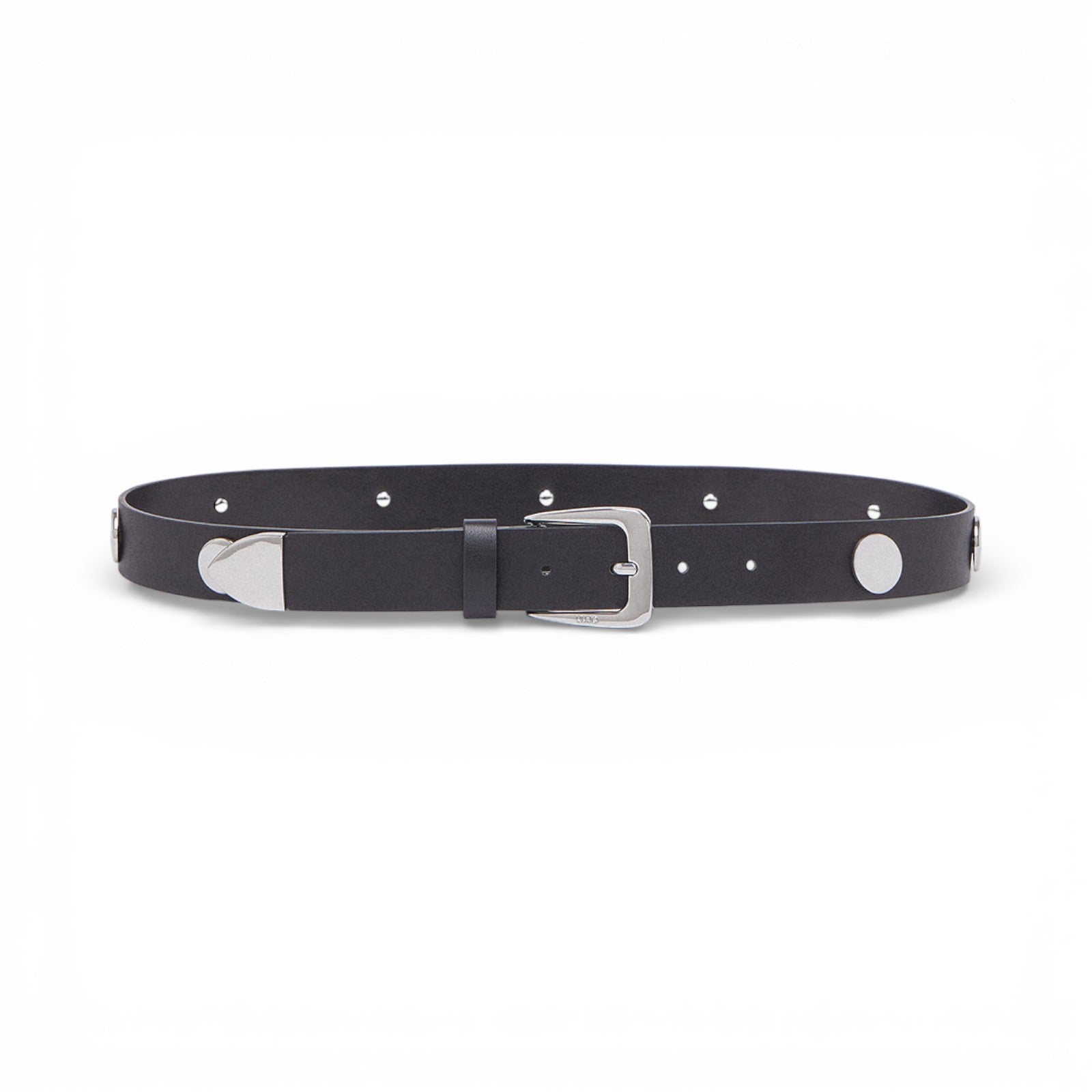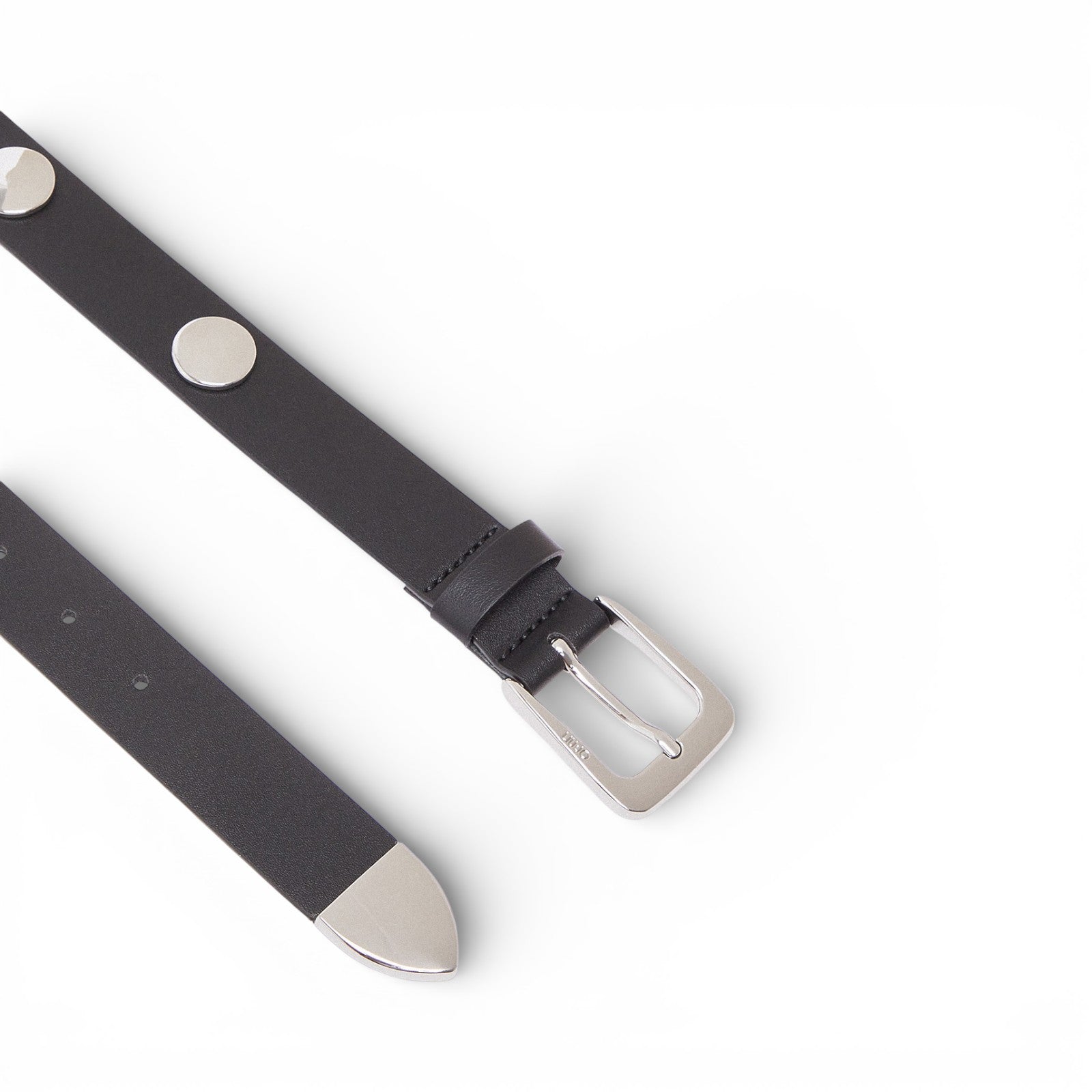Cintura da donna. Borchie all-over. Fibbia in metallo. Chiusura regolabile.