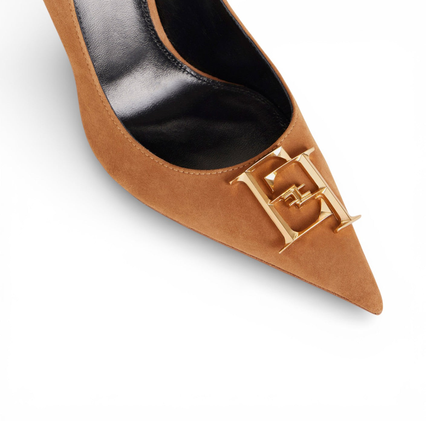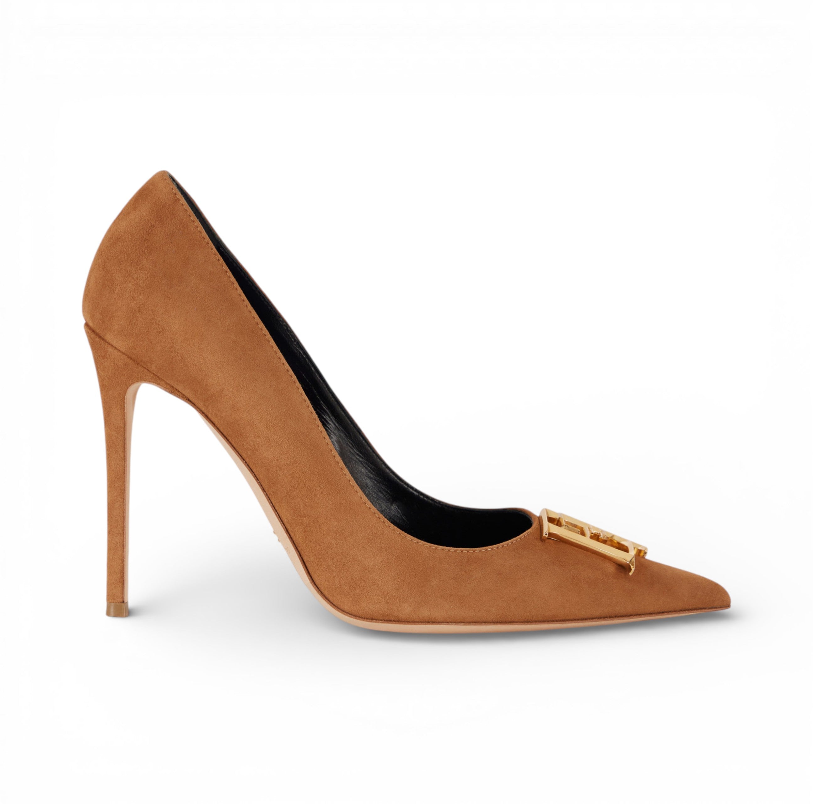 Décolleté realizzate in suede con tacco stiletto e punta affusolata. Dal design essenziale e deciso, sono impreziosite dal dettaglio con logo che decora il davanti.