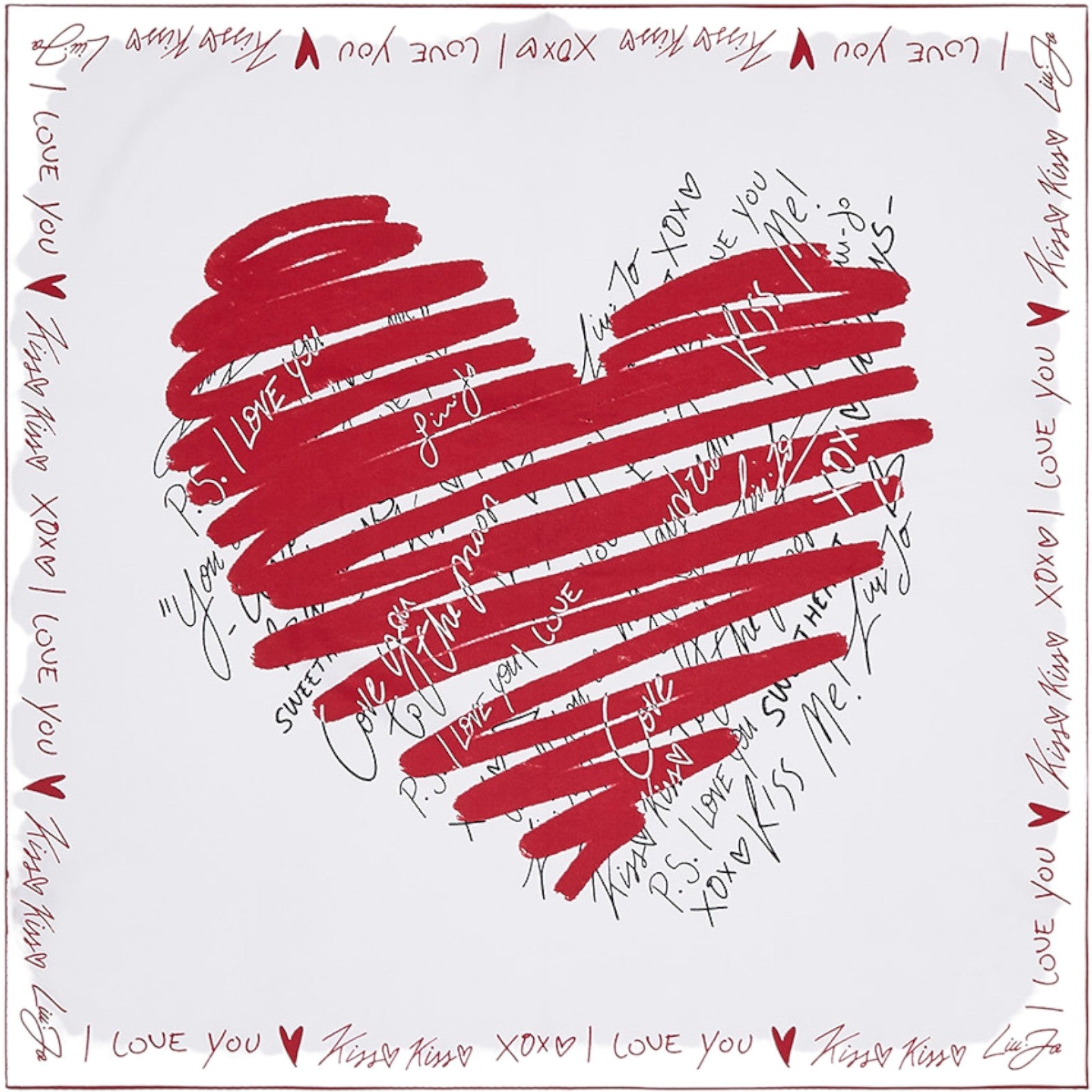 Foulard in tessuto stampato. Cuore e scritte. Perfetto per aggiungere un tocco romantico al tuo look. prodotto "Liu Jo Better".