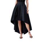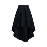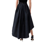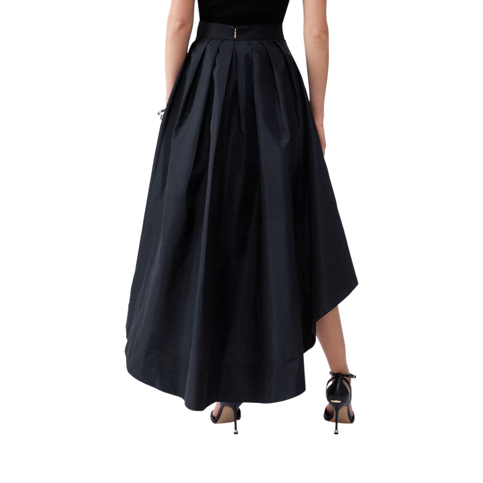 Gonna nera in taffetà. Asimmetrica. Linea drappeggiata. Chiusura con zip dietro.