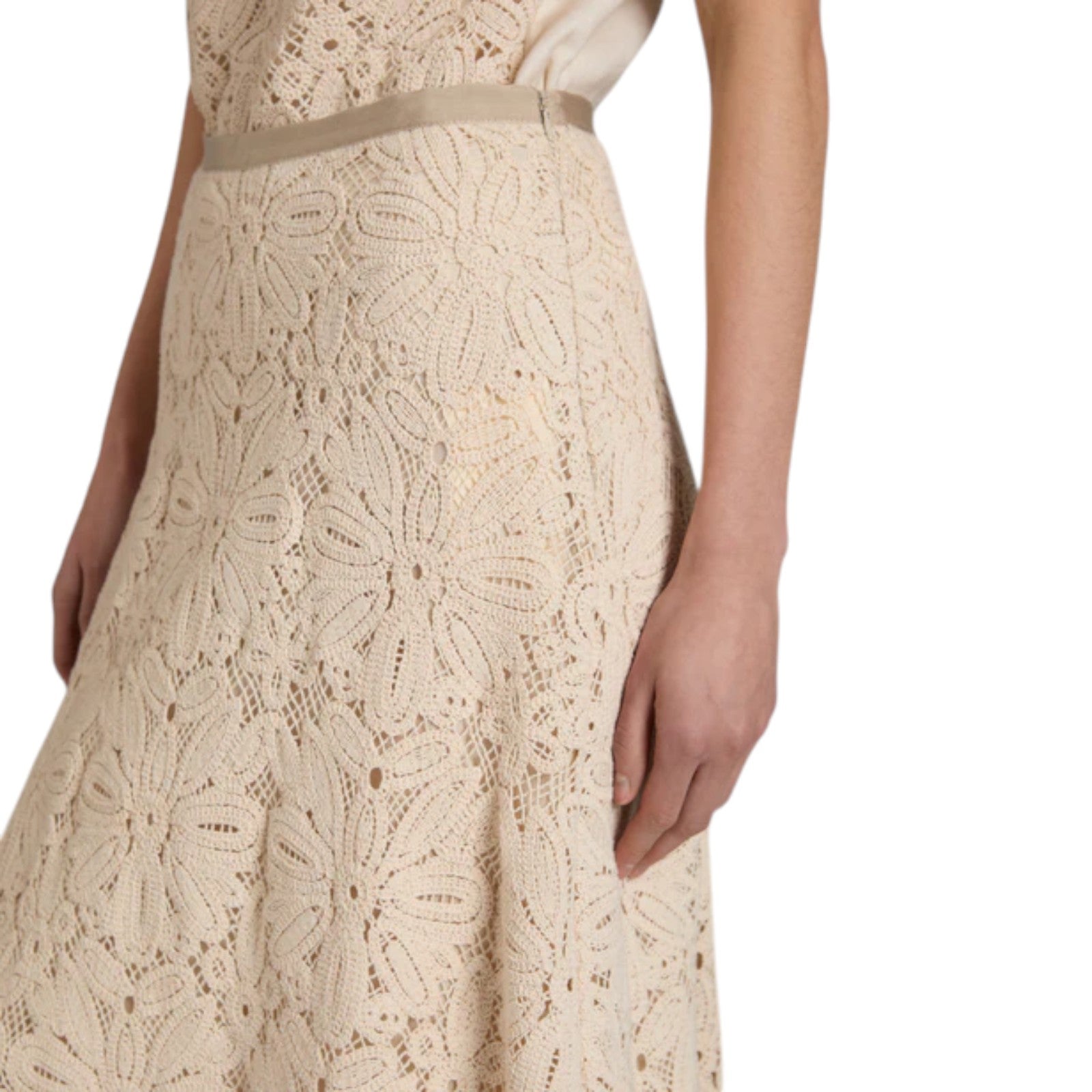 Questo capo ha una vita regolare e una vestibilità ampia lungo la silhouette. Consigliamo di procedere con la scelta della propria taglia abituale. La gonna presenta fodera in mussola di cotone, cintura in canetè con chiusura sul fianco.