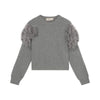 Maglia in lana lavorata con gioco di coste e impreziosita da applicazioni di piume sulle spalline.