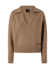 Maglione con colletto stile polo, scollo a V e maniche lunghe realizzato in morbido tessuto jacquard bottonato, impreziosito da applicazione di strass luminosi su tutta la texture. Orlo e polsini sono lavorati a coste, mentre sul davanti a lato spicca l'etichetta tono su tono con logo lettering PINKO.