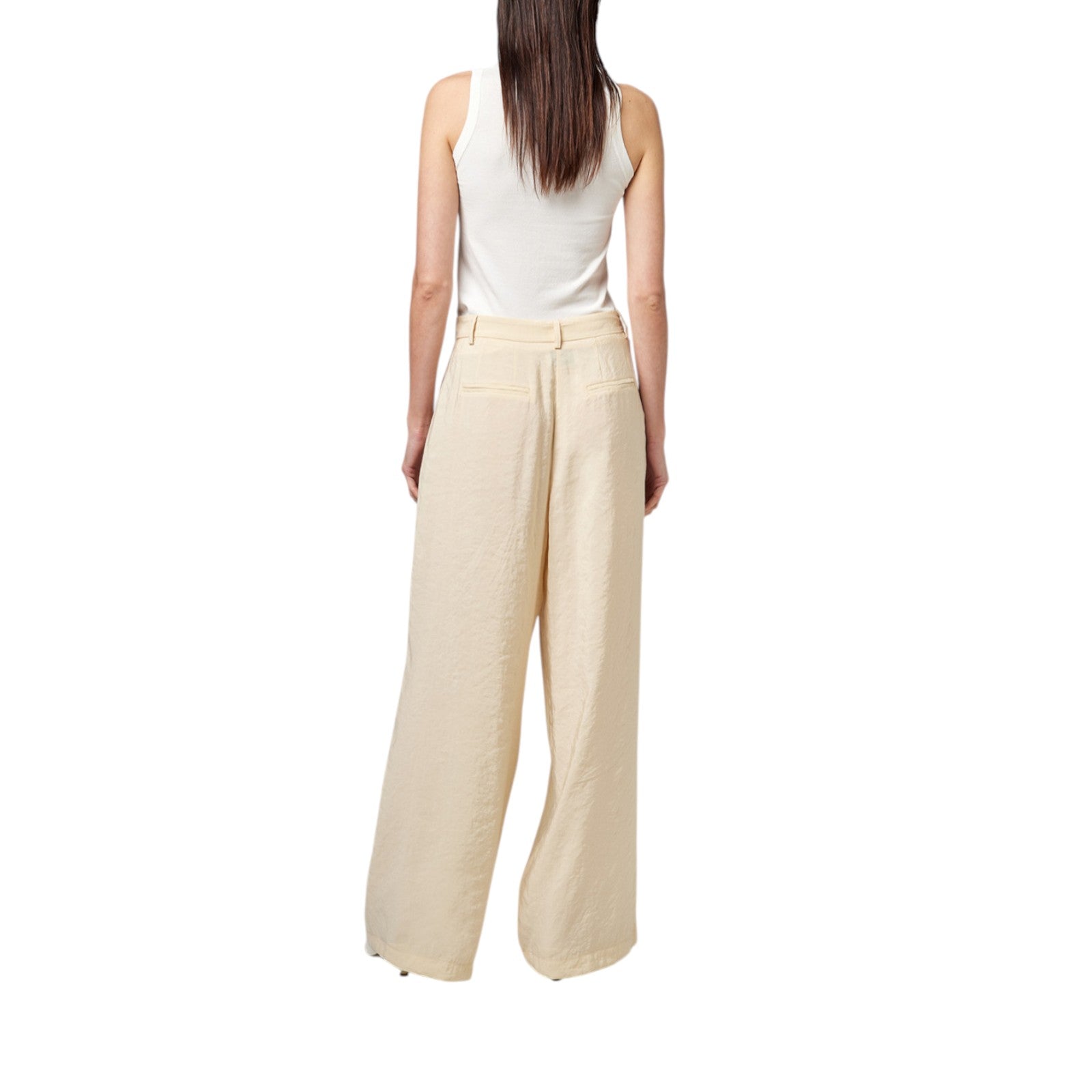 Pantalone palazzo con pince aperta.