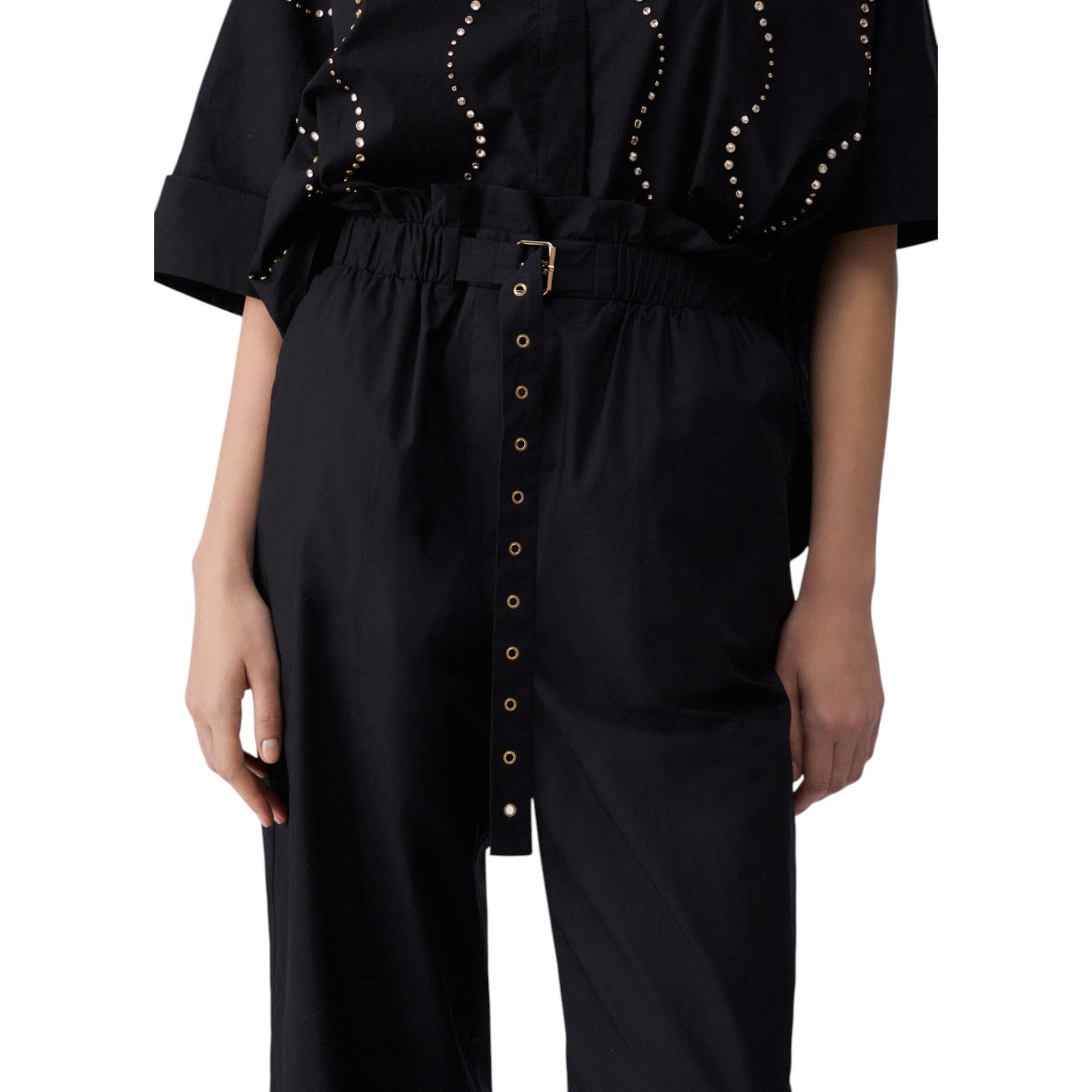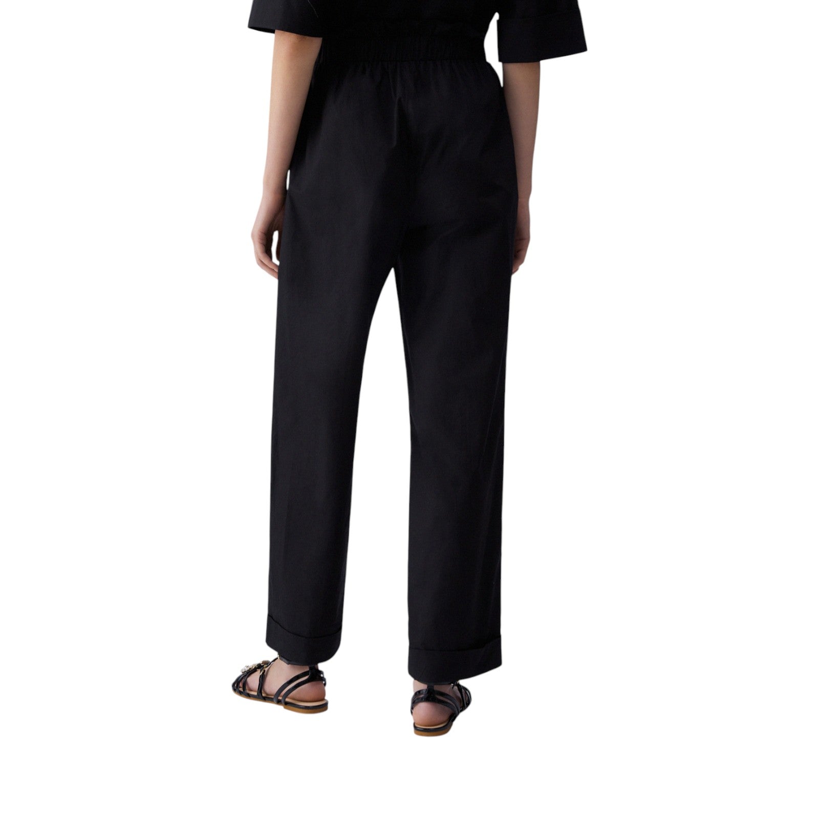 Pantaloni in tessuto strutturato. Vita media. Cintone elastico in vita. Comode tasche. Cintura regolabile. Gamba asciutta.