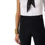 Pantaloni donna in doppio crêpe stretch con logo charm