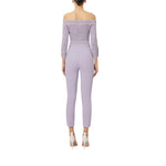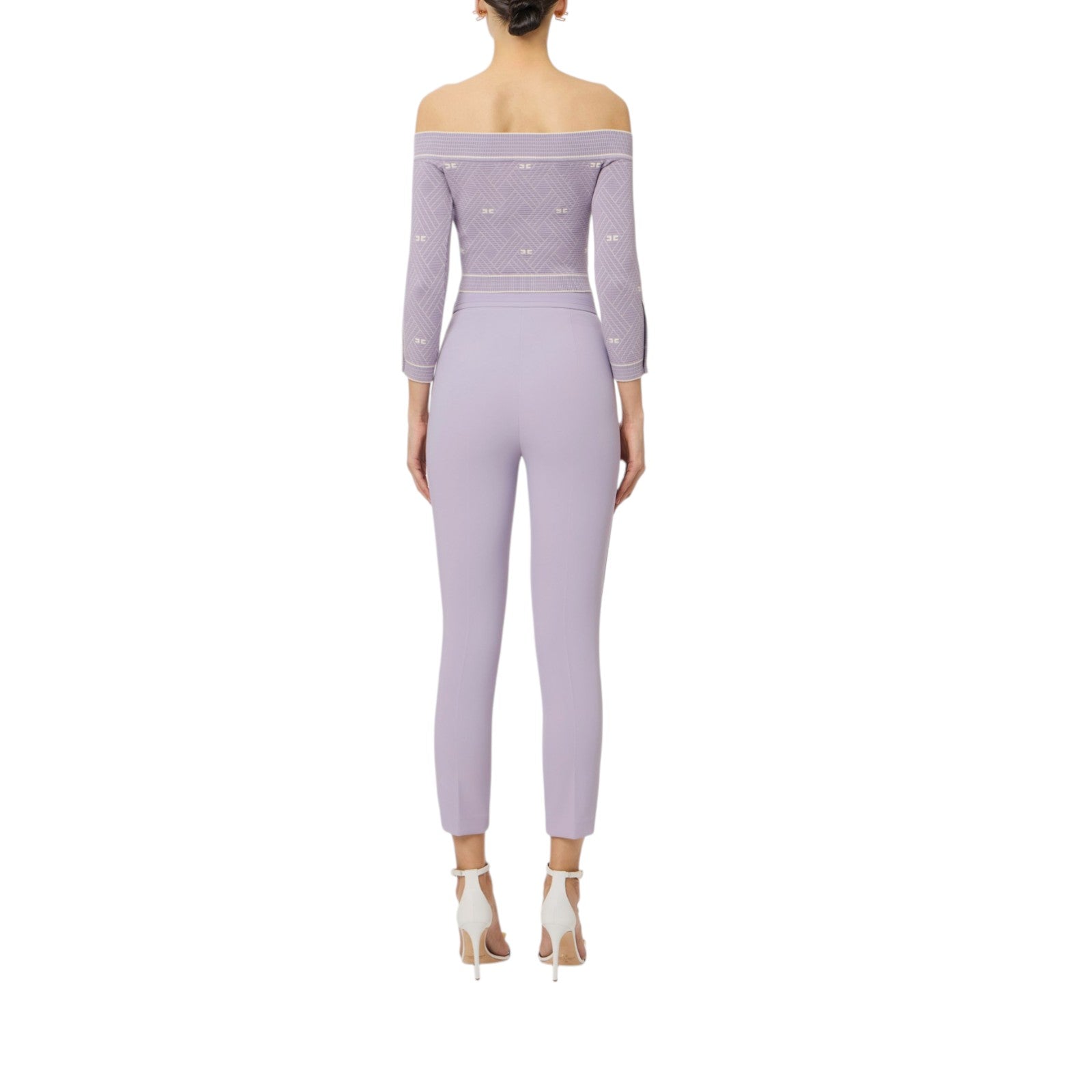 Pantaloni donna in doppio crêpe stretch con logo ricamato